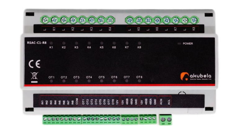 8-канальний RS-485 перемикач-актуатор Akubela RSAC-C1-R8, 12 В DC, до 16 А/канал Akubela RSAC-C1-R8 — це високопродуктивний 8-канальний перемикач-актуатор, призначений для централізованого керування електроприладами, освітленням, приводами та іншими елементами автоматизації розумного будинку. Пристрій працює через інтерфейс RS-485, що забезпечує стабільну передачу сигналу на великих дистанціях та промисловий рівень надійності. Модуль оснащено 8 каналами релейного керування, кожен із яких підтримує до 16 А (резистивне навантаження) або до 500 Вт (ємнісне), що дозволяє підключати як освітлення, так і потужні пристрої. Також є 8 каналів виходу живлення 12 В з максимальним струмом 250 мА/канал — для датчиків або допоміжних пристроїв. Пристрій живиться від 12 В DC / 2 А, має ступінь захисту IP20, виконаний у корпусі з PVC та призначений для монтажу всередині приміщень. Працює в температурному діапазоні 0 … +45°C при вологості 0–95% RH без конденсату. RSAC-C1-R8 використовується у преміальних системах автоматизації Akubela/Akuvox та інтегрується з контролерами розумного будинку, забезпечуючи гнучкі сценарії та централізоване управління. ТЕХНІЧНІ ХАРАКТЕРИСТИКИ: Модель: RSAC-C1-R8 Тип пристрою: перемикач-актуатор (релейний модуль) Інтерфейс зв’язку: RS-485 Рекомендоване живлення: 12 В DC / 2 А I/O кількість: 8 каналів Релейні виходи: 8 каналів макс. 16 А/канал (резистивне навантаження) макс. 500 Вт/канал (ємнісне навантаження) Вихід 12 В: 8 каналів, макс. 250 мА/канал Робоча температура: 0°C … +45°C Робоча вологість: 0 … 95% RH (без конденсату) Матеріал корпусу: PVC / пластик Габарити: 160 × 95.7 × 67 мм Ступінь захисту: IP20 Akubela — це бренд систем «розумного дому» компанії Akuvox, одного зі світових лідерів у сфері IP-домофонії та рішень для «розумних будівель». Продукція Akubela поєднує технологічний досвід Akuvox і пропонує сучасні елементи домашньої інфраструктури, що підвищують безпеку, комфорт і зручність життя. Екосистема Akubela працює через хмарний сервіс Akubela Cloud, до якого підключаються всі пристрої управління, датчики, модулі моніторингу та виконавчі елементи дому. Керування здійснюється через мобільний застосунок BelaHome, що перетворює смартфон на повноцінний центр контролю. Головна перевага системи — підтримка протоколу KNX, що дозволяє інтегрувати рішення Akubela в нові та існуючі проекти «розумного будинку» на базі KNX, включно зі спеціальними версіями настінних панелей і моніторів управління.
