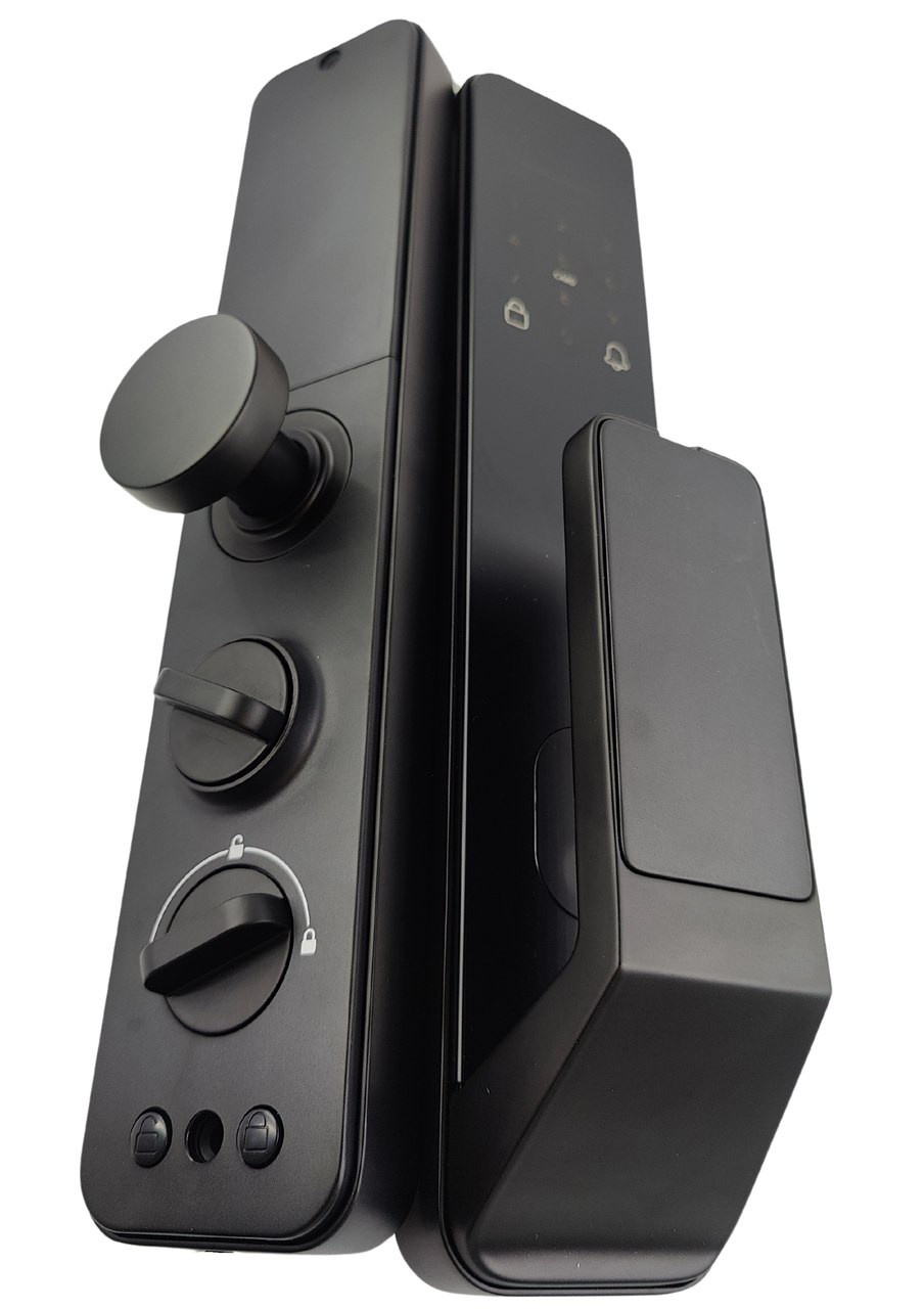 Розумний біометричний замок для дверей Koval Box1 чорний Koval Box1 — автономний смарт-замок для офісу або квартири. Повне керування і налаштування замка зі смартфона через безкоштовний додаток Smarta Lock. Може встановлюватися як на вхідні, так і на міжкімнатні двері. Масивний корпус виконаний із захисним покриттям, що забезпечує тривалий термін служби, високу вандалостійкість та захист від злому. Відкриття замка можливе такими способами: Смартфоном через безкоштовний додаток Smarta Lock. Відбитком пальця. За допомогою введення паролю на сенсорній клавіатурі. Брелоком або NFC-міткою. Механічним ключем. RFID-карткою. ТЕХНІЧНІ ХАРАКТЕРИСТИКИ: Розміри накладки без ручки: Вх363,4 мм, Шх75,4 мм, Гх26 мм. Швидке відкриття замка — 0,3 сек. Завжди можна відкрити механічним ключем. Повідомлення про подію — українська, англійська мови. Легка заміна замка. Зручний у встановленні, не потребує прокладання проводів. Підходить як для офісів, так і для готелів, хостелів, орендованих квартир. Можна відкривати з будь-якої точки світу (опціонально з використанням шлюзу Wi-Fi HUB). Віддалений моніторинг стану дверей — відкрито/зачинено (опціонально з використанням датчика дверей). Відсутність натискної ручки робить замок максимально безпечним і зломостійким. Керування ригелями здійснюється за допомогою мотора, розташованого всередині замка. Потужний мотор-редуктор автоматично висуває прямі ригелі та надійно блокує двері, протидіючи силовому злому. Мобільний безкоштовний додаток для Android і iOS — Smarta Lock. Усі елементи конструкції та електроніка замка мають захист від вологи та пилу за стандартом IP55. Надійний перемикач механічного блокування — «нічник». У заблокованому стані замок можна розблокувати лише з внутрішнього боку. Комплектація: Накладки (передня та задня). Брелок — 2 шт. Ключі — 2 шт. Монтажний комплект. Гумова накладка — 2 шт. Інструкція користувача. Керування електронним накладним замком здійснюється: Відбитком пальця (200 шт.); PIN-кодом (150 шт.); Картками / брелоками MIFARE (200 шт.); Механічним ключем (2 шт.); Bluetooth (через безкоштовний мобільний додаток); Wi-Fi (опціонально з використанням шлюзу Wi-Fi HUB); За допомогою NFC-мітки; Інтеграція з Ajax; При інтеграції з розумним домом GOOGLE HOME / AMAZON ALEXA можна керувати замками за допомогою голосу або смарт-сценаріїв. Рекомендується додатково придбати шлюз Wi-Fi HUB. Він дозволяє, маючи доступ до інтернету, відкривати замок за допомогою телефону, видаляти/змінювати існуючі паролі, переглядати, хто, яким способом і коли відкривав замок, отримувати PUSH-повідомлення відразу після відкриття із зазначенням часу та імені, контролювати й запитувати стан замка (відкритий він чи зачинений), а також бачити рівень заряду батарей з будь-якої точки світу. Через Bluetooth дистанційно смарт-замок можна: Відкривати. Контролювати рівень заряду. Переглядати, хто і коли входив. Надавати повне або часткове керування і налаштування замка іншим людям. Надавати доступ іншим людям: постійний, тимчасовий або циклічний (наприклад, запрограмувати на відкриття в певний проміжок часу (наприклад, з 9:00 до 18:00) або лише по понеділках). Смарт-замок у готельній системі Дверний замок призначений для використання в готельних системах. Основний принцип роботи полягає в обмеженні доступу до номеру готелю, зручності для гостей та можливості адміністрування заселення з боку персоналу готелю. 