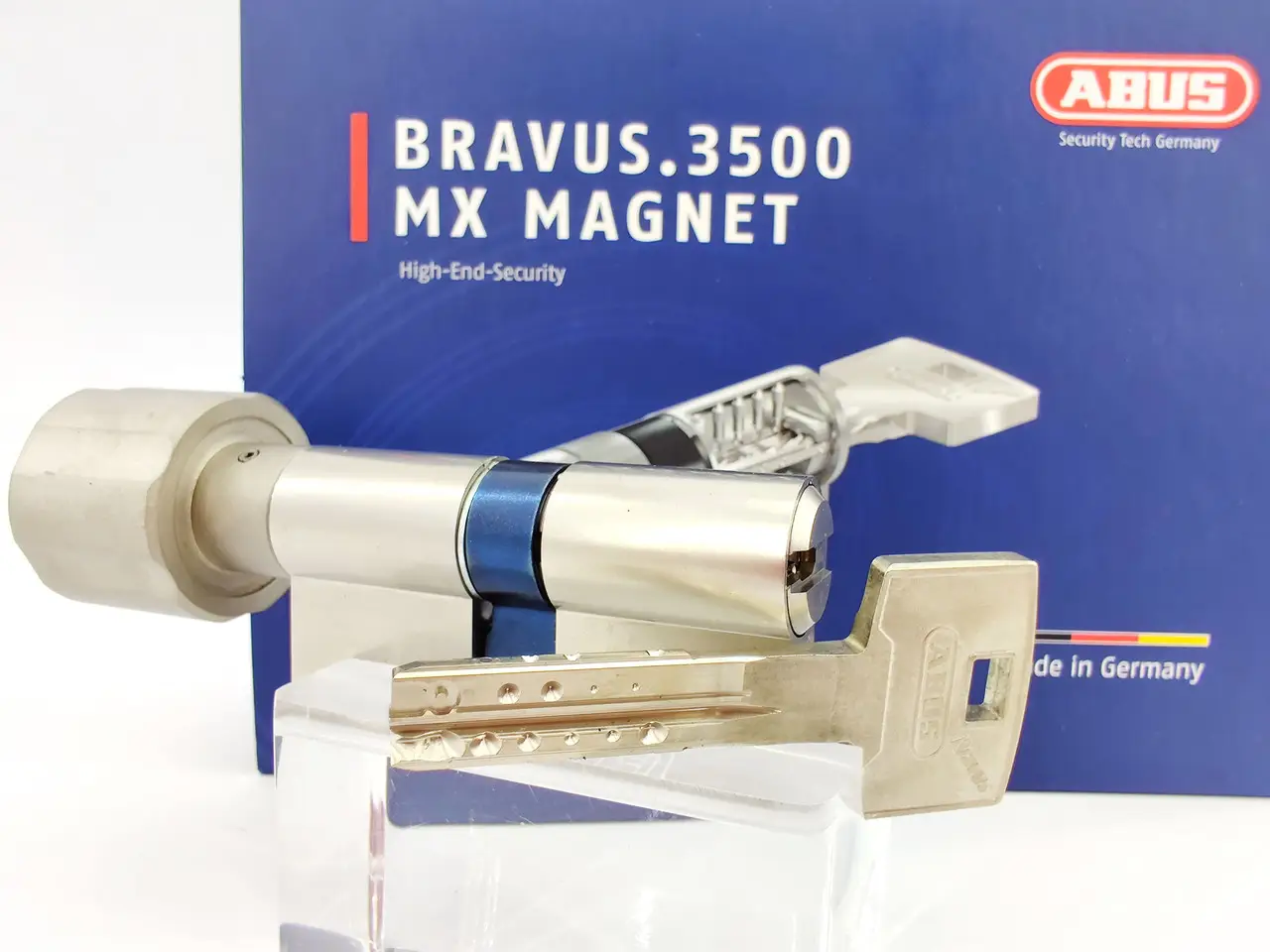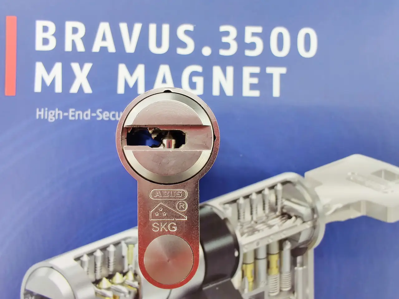 Abus Bravus 3500 MX Magnet оснащен інтелектуальною магнітною технологією та запатентованою системою Intellitec, які використовуються в ключі та циліндрі, сприяючи ефективному протистоянню спробам маніпуляцій несанкціонованим ключем.