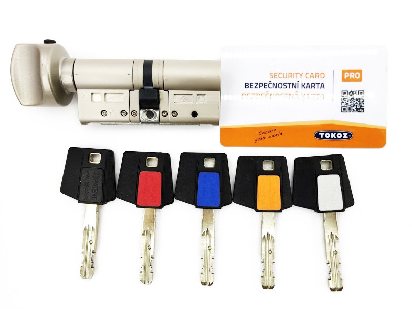 Tokoz Pro 300 ключ/тумблер нікель матовий Механізм дискового циліндра TOKOZ PRO 300, за рахунок високої надійності механізмів даного типу, має захист від злому бампінгом або ж відмичками. Також, дисковий циліндр TOKOZ PRO 300 не боїться і суворих умов зовнішнього середовища – морозів та підвищеної вологості. Така личинка буде працювати в запилених умовах і навіть бруд не завадить її надійної роботи. Фірма TOKOZ оснастила PRO 300 захистом від зовнішніх фізичних впливів. Перший диск в циліндрі не бере участь у наборі секретного коду механізму, але защищает від висвердлювання, так як зроблений з каленной сталі. Сам механізм секретності теж вельми міцний і надійний, а 9 дисків секретної комбінації дозволяють зробити більше мільярда комбінацій. Циліндри Tokoz Pro 300 і Tokoz Pro 400 відрізняє один елемент, а саме корпус самого циліндра – у версії зовнішня сторона корпусу циліндра гартована і збільшена на 3 мм, що захищає циліндр і кодові диски від висвердлювання. ДОДАТКОВІ ВАРІАНТИ ТУМБЛЕРА Варіанти кольору тумблера: матовий нікель, полірований хром, бронза, золото, матовий хром і чорний. * Циліндр існує тільки в одному кольорі – матовий нікель. Циліндр Tokoz Pro 300 ключ/тумблер на вибір замовника може бути забезпечений унікальною функцією тимчасового блокування циліндра. Суть її полягає в тому, що злегка відтягнувши на себе тумблер спрацьовує засувка циліндрового механізму, яка повністю блокує його роботу – тумблер фіксується в одному положенні і не провертається, а механізм циліндра з «ключовий» сторони провертається «вхолосту». Таким чином, виробник реалізував функцію нічний засувки в циліндрі Tokoz Pro 300 ключ/тумблер . Функція встановлюється опціонально і безкоштовно, більш детальну інформацію можете отримати у менеджерів нашої компанії. ХАРАКТЕРИСТИКИ Принцип роботи – обертові диски. Циліндр обладнаний дисковим контролером. Функціонування – в обох напрямках. Циліндр високого ступеню секретності. Не існує методу розкриття циліндра без оригінального ключа. Великий хід елементів системи блокування циліндра. Хороша механічна захист від злому: загартовані обертові частини проти висвердлювання. Надійна робота в екстремальних умовах. КОМПЛЕКТАЦІЯ Тип циліндра – ключ/тумблер. В комплекті – 5 ключів. Кодова картка для додаткової нарізки нових ключів. Кріпильний гвинт. Циліндр Tokoz Pro 300 представлений у 4 модифікаціях – ключ/тумблер, , , ДОДАТКОВІ ПОСЛУГИ ТА КОМПЛЕКТУЮЧІ Виготовлення ключа Tokoz Pro 300 – 800 грн. Перекодування циліндра Tokoz Pro 300 – 2600 грн. Збирання циліндрів в системі “Один ключ” (1 шт.) – 300 грн. Токоz – це чеський виробник замково-скобянної продукції. Його діяльність починається з 1920 року. Спочатку Tokoz спеціалізувався на випуску саме навісних замків. Але з часом лінійка товарів росла і ширилася, і зараз Tokoz виготовляє все, аж до високосекретних циліндрових механізмів.