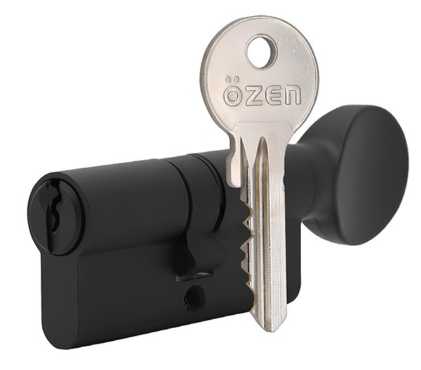 Циліндровий механізм замка OZEN 100 ключ/тумблер чорний, 3 ключі OZEN 100 – серцевина замка стандарту EURO.DIN для вхідних і міжкімнатних дверей. Циліндр виготовлений із латунного сплаву та обладнаний п’ятьма пінами для надійної довготривалої роботи. ТЕХНІЧНІ ХАРАКТЕРИСТИКИ Матеріал корпусу — латунь. Кількість пінів — 5. Стандарт циліндра — EURO.DIN. Тип ключа — англійська. Матеріал ключів — нікельований сплав. КОМПЛЕКТАЦІЯ Циліндр. Ключі — 3 шт. Гвинт для кріплення. Турецька компанія OZEN представляє оригінальні роботи турецьких дизайнерів у 67 країнах світу з 1989 року. Бренд має виробничу лінію площею 10 000 м2 і є єдиною компанією в Європі, яка виробляє дверні ручки, дверні замки, меблі та аксесуари для ванних кімнат під одним дахом. Використовуючи новітні технології Ozen, створює доступні продукти та послуги, які є зручними у використанні та надійними в будь-який час. Філософія бренда — постійне вдосконалення, якість і безпека, щоб задовольнити потреби кожного клієнта.