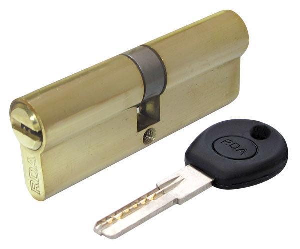 Дверні циліндри RDA — високоякісні циліндри виготовлені з латуні. Мають 6 пінів і додатковий штифт із високоміцної сталі (захищає циліндр від висвердлювання). Два опорні штифта з проточкою захистять від розкриття методом бампінгу. Особливості: ключ-ключ; 5 ключів; розміри: 45/45 мм довжина 90 мм; матеріал латунь. П12070