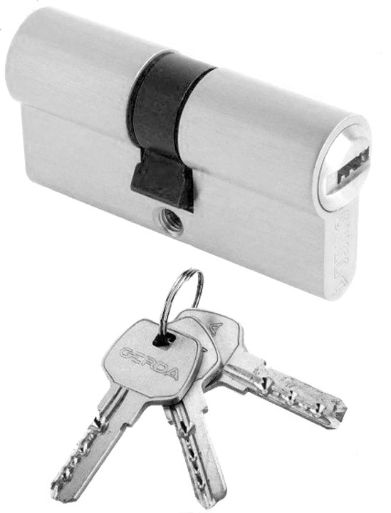 Циліндр GERDA WKMT-1 60 мм 30/30 ключ/ключ нікель Профільні циліндри GERDA WKMT-1, застосовуються у всіх видах врізних замків. Пропонуються в широкому типоразмерном ряді, що дає універсальну можливість широкого використання і підбору відповідного циліндра майже до кожного виду врізних замків та дверної фурнітури Протизламні циліндри. Нова конструкція циліндрів із захистом від відкриття методом бампінгу, з ефективними рішеннями, які захищають від свердління. Існує можливість замовлення циліндрів з монтажним ключем. ТЕХНІЧНІ ХАРАКТЕРИСТИКИ: найвища довговічність механізму – більше 100 000 циклів придатні для протипожежних дверей (сертифікат) захист коду 2 клас в комплекті п’ять ключів та кріпильний гвинт Компанія GERDA (Герда) з’явилася в 1987 році, коли двом хорошим друзям – німця і поляку прийшла в голову ідея організувати підприємство з виробництва замкових пристроїв і систем безпеки найвищої якості і рівня захисту. Назва було визначено особистими уподобаннями, а обраний курс на завоювання вимогливого європейського ринку та на відповідність всім найвищим стандартам і вимогам щодо забезпечення самої надійної безпеки.