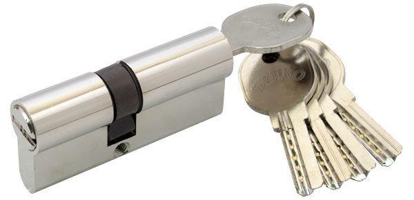 Циліндр дверної Вruno 68 мм нікель Вruno 68мм – циліндр для вхідних дверей в колір нікель виготовлений з високоміцного сплаву. Він обладнаний п’ятьма штифтами з латуні з можливістю перекодування і захистом від висвердлювання. П’ять комплектних ключів виконані з нікельованої латуні з лазерної висічкою. В комплекті є кріпильний гвинт. Технічні характеристики: Загальна довжина 80 мм. Положення борідки 30/38 мм. Штифти 5 Ключі 5 BRUNO — китайський виробник високоякісних комплектуючих і аксесуарів для дверей, що має саму сучасну виробничу лінію у світі одержав визнання тисячі клієнтів.