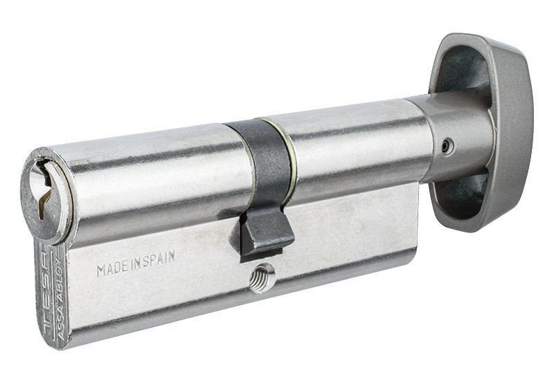 Циліндровий механізм Tesa TE5 70 мм 35х35Т ключ/тумблер хром Платформа: TE5 Симетрія циліндра: 35x35T СПЕЦЗАХИСТ циліндра: Без значення Кількість ключів: 3KEY Дизайн / Колір ключів: TE5_B Профіль Без значення Піновий циліндр англійського типу, класу Standard Security. Технологія «Одинарний пін» (циліндр має 5 пінів, піни мають 10 можливих висот). Характеристики: Завдяки великому діапазону розмірів пінів можна отримати велику кількість секретних комбінацій. Захист від відкриття відмичками. Циліндр сертифікований згідно Європейському стандарту EN-1303. Відповідає міжнародним стандартам якості ISO 9001 і екологічності ISO 14001. Можна використовувати в протипожежних дверях. Кількість робочих кодових комбінацій – 45000. Ресурс – 50000 циклів. Є можливість збору циліндрів в системах «Майстер-ключ» і «Один ключ». Комплектація: циліндр, 3 ключа, сталевий гвинт М5х60. Компанія TESA була заснована ще в 1941 році в місті Ескоріаса (Іспанія). На сьогоднішній день продукція цієї торгової марки успішно реалізується в багатьох країнах світу, пропонуючи рішення в сфері обладнання евакуаційних та аварійних виходів, які дозволяють безпечно і зручно залишити приміщення при виникненні паніки в разі надзвичайних ситуацій і аварій. Наразі компанія є одним із підрозділів великого міжнародного холдингу ASSA ABLOY – світового лідера у виробництві дверних замкових рішень.
