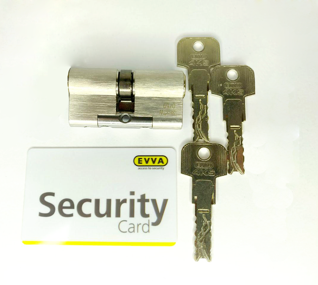 Циліндр EVVA 4KS ключ-ключ Інтелектуальна технологія з функціональним дизайном Циліндр і ключ у системі EVVA 4KS відповідають високим вимогам безпеки для найскладніших умов: Циліндровий механізм не містить пружини, тому вирізняється м’якістю та плавністю своєї роботи. Мінімальне тертя робочих елементів забезпечує циліндру 4KS повільніший знос, тому цей циліндр — це ідеальне рішення, коли необхідна надійна система замикання на довгий період. Блокувальні елементи в 4KS переміщаються по криволінійних напрямних на ключі. Загалом 12 безпружинних слайдерів наводяться в певне положення, справляючись шістьма ключовими кривими та скануються двома контрольними планками. Ключ 4KS сканується загалом чотири рази. Додаткові сканування гарантують максимальну безпеку. Кількість можливих секретних комбінацій перевищує 30.000.000 варіантів, виготовлення дублікату можливе тільки в авторизованому сервісному центрі за наявності картки власника. Четверта прихована напрямна, що виключає можливість дублювання. Технологія кодування EVVA 4KS запатентована до 2035 року. EVVA 4KS особливості захисту Захист від копіювання і сканування — циліндр EVVA 4KS обладнаний чотирма фіксувальними повзунками. Захист від бампінга – безпружинні рухомі елементи всередині циліндра. Захист від свердління — сталеві загартовані штифти. Захист від витягування — сердечник із нержавіючої сталі перешкоджає висмикуванню та перелому циліндра. Технічні характеристики 12 безпружинних стопорних штифтів і 6 контрольних штифтів; Реверсивний ключ оновленого дизайну; Стійкі до зносу стопорні штифти та профільні стрижні, а також відповідний високопотужний модуль із жорсткими металевими штифтами забезпечують захист від виштовхування або вирізання корпусу циліндра; Захист від копіювання забезпечується обмеженими допусками та точними паралельними позиціями, а також запатентованими функціями, що використовуються на ключі; Захист від бампінгу забезпечується безпружинним принципом замикання; 18 штифтів вкрай ускладнюють відкривання циліндра відмичкою; Можливо створити майстер систему, використовуючи механічні циліндри, а також у неї можна інтегрувати моторизовані циліндри, які відкриваються і закриваються за допомогою моторизованої ручки з електронним керуванням, у такий спосіб зробивши комбіновану систему; Типи циліндрів: ключ — ключ, ключ — тумблер; Країна-виробник: Австрія. Варіанти колірного виготовлення циліндра Циліндр може бути виготовлений в кольорах: Ni (нікель), MP (золото), PB (бронза), чорний Варіанти виготовлення циліндра EVVA 4KS Циліндр Evva 4KS доступний у двох варіантах виготовлення – ключ-тумблер і ключ-ключ. Додаткові функції: KZS — додатковий захист плаги від висвердлювання; SSW — захист від води та пилу; BSZ — можливість відкрити циліндр навіть у тому разі, якщо з протилежного боку вставлений і повернутий ключ. Компанія EVVA, заснована в 1919 році у Відні, займається розробкою і виробництвом механічних і електронних замикаючих систем. Продукція компанії EVVA характеризується високою якістю, інноваційним підходом, максимальним ступенем захисту і привабливим дизайном. Сьогодні, завдяки неперевершеній якості продукції, помноженій на багаторічний досвід, компанія EVVA є одним з провідних світових лідерів у виробництві систем безпеки.