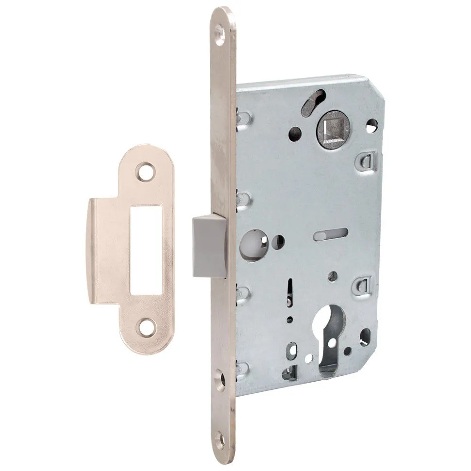 Циліндровий замок Comit 81693 85 мм нікель + відповідна планка (Китай)
