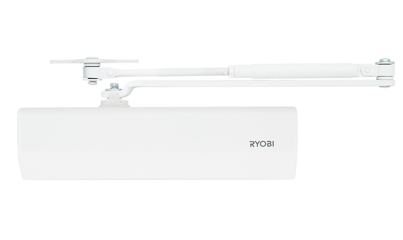 Дотягувач дверний накладний RYOBI D-2550 BC UNIV до 80кг білий D-2550 BC UNIV – дотягувач накладного типу для внутрішніх та зовнішніх дверей класу 1-4. Технічні характеристики Клас 1-4. BC – гальмо відчинення. Максимальна вага дверей – до 80 кг. Максимальна ширина дверей – 1100 мм. Ресурс експлуатації – 1 000 000 циклів. Робоча температура – від – 20°С до + 45°С. Розміри – 250х67х53 мм. Можливість застосування у протипожежних дверях з межею вогнестійкості 60 хвилин. Сертифікований згідно EN 1154. Комплектація Комплект кріплення, тяга універсальна (стандартна, кронштейн паралельної тяги), пластикова декоративна кришка. Компанія Ryobi Limited була створена в 1943 році як виробник високоякісного лиття для японської промисловості. Надалі Ryobi Limited розширила своє виробництво на сьогоднішній день є компанією світового класу, що виробляє друкарське обладнання, інструменти, будівельні вироби та ін Дверні дотягувачі японського виробника RYOBI є взірцем високої якості, надійності та стильного дизайну.