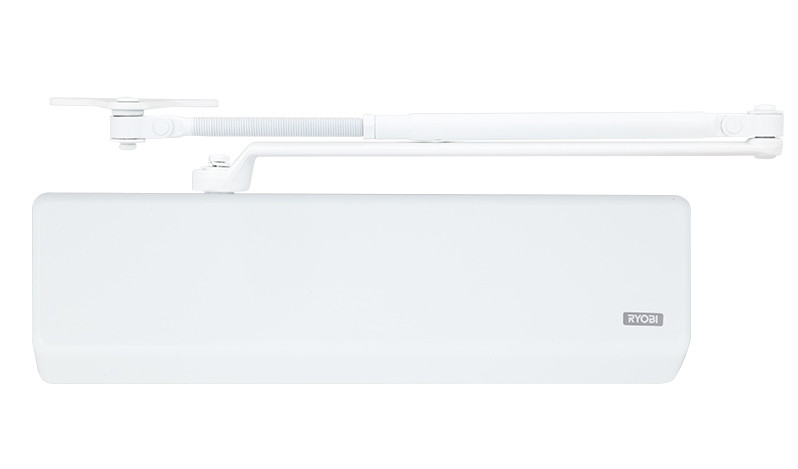 Дотягувач дверний накладний RYOBI D-4550 BC UNIV/DA до 200кг білий D-4550 BC UNIV/DA – дотягувач накладного типу для великогабаритних дверей, що піддаються сильному тиску і навантаженню; клас 2-7+. Технічні характеристики Клас 2-7+. BC – гальмо відчинення. DA – затримка закриття. Максимальна вага дверей – до 200 кг. Максимальна ширина дверей – 1600 мм. Регулювання початкової та кінцевої швидкостей зачинення. Ресурс експлуатації – 2 000 000 циклів. Робоча температура – від – 20°С до + 45°С. Розміри – 331х97х62 мм. Можливість застосування у протипожежних дверях з межею вогнетривкості 60 хвилин. Сертифікований згідно EN 1154. Комплектація Комплект кріплення, тяга універсальна (стандартна, кронштейн паралельної тяги), пластикова декоративна кришка. Компанія Ryobi Limited була створена в 1943 році як виробник високоякісного лиття для японської промисловості. Надалі Ryobi Limited розширила своє виробництво на сьогоднішній день є компанією світового класу, що виробляє друкарське обладнання, інструменти, будівельні вироби та ін Дверні дотягувачі японського виробника RYOBI є взірцем високої якості, надійності та стильного дизайну.