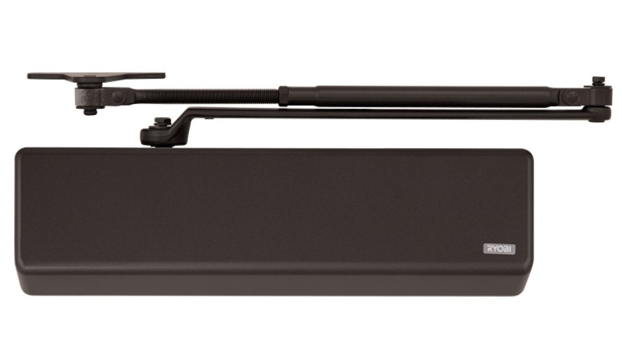 Дотягувач дверний накладний RYOBI D-4550 BC UNIV/DA до 200кг темно-бронзовий D-4550 BC UNIV/DA – дотягувач накладного типу для великогабаритних дверей, що піддаються сильному тиску і навантаженню; клас 2-7+. Технічні характеристики Клас 2-7+. BC – гальмо відчинення. DA – затримка закриття. Максимальна вага дверей – до 200 кг. Максимальна ширина дверей – 1600 мм. Регулювання початкової та кінцевої швидкостей зачинення. Ресурс експлуатації – 2 000 000 циклів. Робоча температура – від – 20°С до + 45°С. Розміри – 331х97х62 мм. Можливість застосування у протипожежних дверях з межею вогнестійкості 60 хвилин. Сертифікований згідно EN 1154. Комплектація Комплект кріплення, тяга універсальна (стандартна, кронштейн паралельної тяги), пластикова декоративна кришка. Компанія Ryobi Limited була створена в 1943 році як виробник високоякісного лиття для японської промисловості. Надалі Ryobi Limited розширила своє виробництво на сьогоднішній день є компанією світового класу, що виробляє друкарське обладнання, інструменти, будівельні вироби та ін Дверні дотягувачі японського виробника RYOBI є взірцем високої якості, надійності та стильного дизайну.