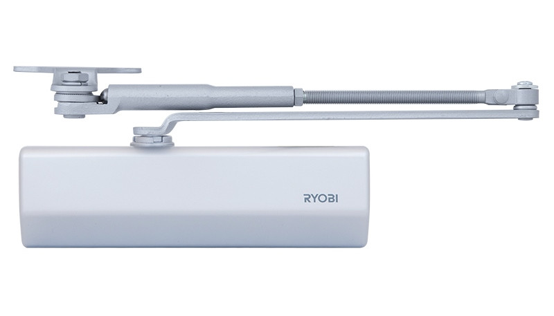 Дотягувач дверний накладний RYOBI DS-1554P PRL до 60 кг сріблястий DS-1554P PRL — дотягувач накладного типу для внутрішніх і зовнішніх дверей класу 2/3. Регулювання класу дотягувача відбувається через переміщення його дверним полотном. Технічні характеристики Клас 2/3. Максимальна вага дверей – до 60 кг. Максимальна ширина дверей – 965 мм. Регулювання початкової та кінцевої швидкостей закриття. Ресурс експлуатації – 1 000 000 циклов. Робоча температура — від -20 °C до +45 °C. Розміри — 223х67х52 мм. Комплектація Комплект кріплення, тяга паралельна з фіксацією, пластикова декоративна кришка. Компанія Ryobi Limited була створена 1943 року як виробник високоякісного лиття для японської промисловості. Надалі Ryobi Limited розширила своє виробництво й на сьогодні є компанією світового класу, що виробляє друковане обладнання, електроінструменти, будівельні вироби та ін. Дверні дотягувачі японського виробника RYOBI є зразком високої якості, надійності та стильного дизайну. RYO7000009856