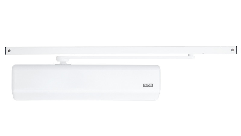 Дотягувач дверний накладний RYOBI DS-3550T SLD BC/DA до 65кг білий DS-3550T SLD BC/DA – дотягувач накладного типу для внутрішніх та зовнішніх дверей; клас 2-3. Технічні характеристики Клас 2-3. BC – гальмо відчинення. DA – затримка закриття. Максимальна вага дверей – до 65 кг. Максимальна ширина дверей – 965 мм. Регулювання початкової та кінцевої швидкостей зачинення. Ресурс експлуатації – 2 000 000 циклів. Робоча температура – від – 20°С до + 45°С. Розміри – 304х75х62 мм. Сертифікований згідно EN 1154. Стандартом EN 1154 не допускається встановлення дотягувача з фіксацією відкритого положення дверей на протипожежні двері. Комплектація Комплект кріплення, тяга ковзна з фіксацією, пластикова декоративна кришка. Компанія Ryobi Limited була створена в 1943 році як виробник високоякісного лиття для японської промисловості. Надалі Ryobi Limited розширила своє виробництво на сьогоднішній день є компанією світового класу, що виробляє друкарське обладнання, інструменти, будівельні вироби та ін Дверні дотягувачі японського виробника RYOBI є взірцем високої якості, надійності та стильного дизайну.