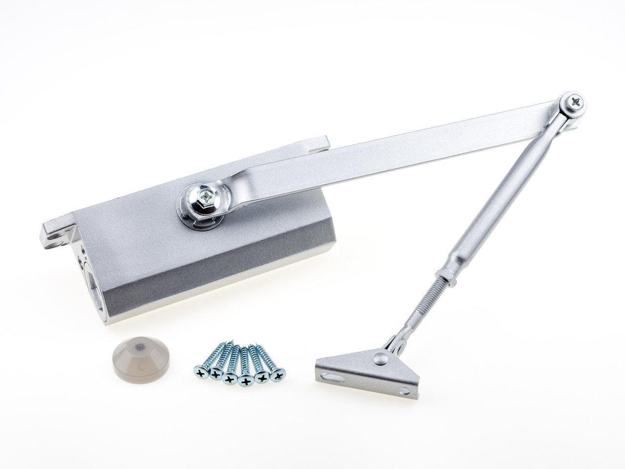 Доводчик дверний SEVEN DC-7742 Доводчик накладної для дверей вагою до 65 кг. — Регулювання швидкості і зусилля закриття дверей. — Для дверей вагою 40 – 65 кг. — Ширина дверей 550 – 1100 мм. — Розміри : 132 х 19 мм — Колір корпусу: сріблястий Дверний доводчик Seven DC-7742 комерційного типу, який в автоматичному режимі безшумно і плавно закриває будь-які двері. Наведений механізм незамінний в точках, де спостерігається інтенсивне проходження людей, і якщо випадково хтось не закрив двері, то доводчик виконає це автономно. Данный доводчик назначен для накладного монтажа на различный тип дверей, масса которых до 65 килограмм. Отличительная особенность данной модели – это возможность самостоятельной настройки необходимой скорости и силы закрытия двери, а также регулировки затормаживания при непредвиденном возникновении сквозняка или сильного ветра. Это позволит устройству одинаково хорошо действовать при угле открывания до 180°. Масло, которое не замерзает, позволит бесперебойно действовать при низких температурах. Механічний доводчик порівняно нескладно налаштовується, а при установці не передбачається будь-яких труднощів. Щоб під час монтажу та регулювання доводчика не виникали питання, додатково до комплекту додається монтажна інструкція. Корпус з алюмінієвого сплаву буде сприяти безвідмовної тривалої експлуатації. Колір корпусу: сріблястий.
