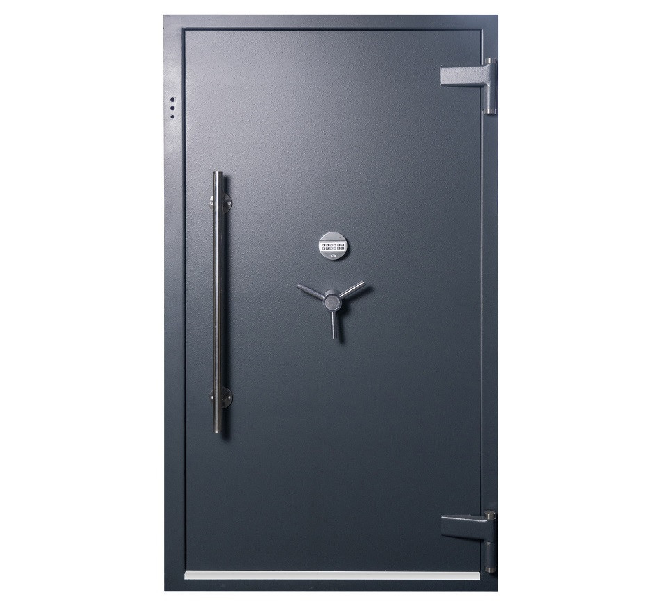 Зламостійкі двері для сховища 5 клас Надійні зламостійкі двері для банківських сховищ, секретних кімнат і укриттів. Обладнані подвійною ригельною системою, яка відповідає всім обов’язковим вимогам ДСТУ EN 1143 — 1: 2019 і ТУ У 28.7-21488112.002 — 2002 для захисту від несанкціонованого вторгнення та злому. Система замикання дає змогу закривати сховище зсередини без можливості зовнішнього відкриття. ТЕХНІЧНІ ХАРАКТЕРИСТИКИ Тип — зламостійкі двері для сховищ. Висота — 2065 мм. Ширина — 1150 мм. Глибина — 270 мм. Товщина захисного шару 100 мм. Тип замка — електронний сейфовий замок, сертифікат класу B ДСТУ EN 1300:2014. Зламостійкість — V клас ДСТУ EN 1143-1:2019. Система замикання двостороння система замикання з 19 активними хромованими ригелями. Тип покриття — лако-фарбове. Колір — темно-сірий. Вага 842 кг. Гарантія на конструкцію — 5 років. Гарантія на замок 1 рік. Компанія «Паритет-К» – лідер ринку України з виробництва та продажу сейфів і засобів для безпечного зберігання цінностей. З 1992 року компанія виробляє продукцію високої якості для потреб європейського та українського споживача. Якість продукції відповідає високим міжнародним стандартам ISO 9001. Компанія «Паритет-К» – єдиний в Україні серед виробників сейфів і засобів для безпечного зберігання член Асоціації Європейських Систем Безпеки ESSA. Виробництво і постачання єдиної продукції для ринку Європи та України. Продукція проходить сертифікаційні випробування в Європі. Сертифікація продукції відбувається згідно з європейськими стандартами EN 1143-1, EN 14450, EN 15659. У виробництві застосовуються передові технічні та конструкторські рішення власним конструкторським бюром. «Паритет-К» має унікальні запатентовані розробки у виробництві сейфів і споруд банківських сховищ.
