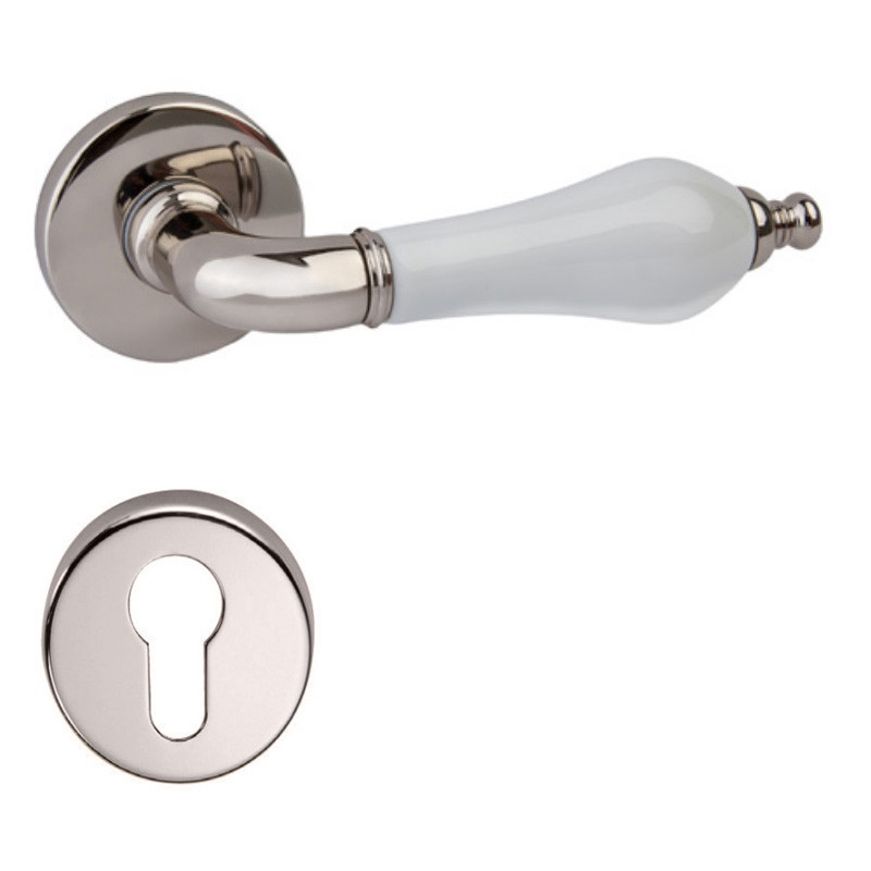 Дверна ручка DND by Martinelli MONICA з накладкою під циліндр полір.нік./бел.фарфор