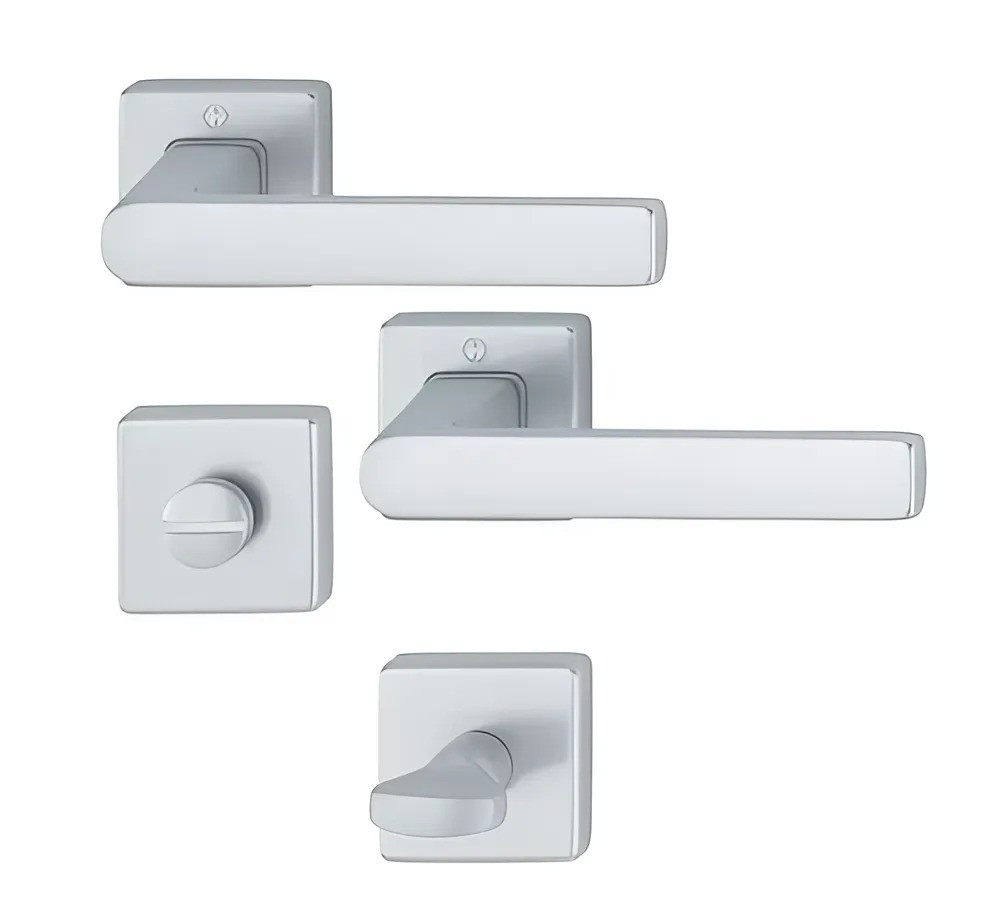 Ручка для дверей Hoppe BRINDISLI з фіксатором WC хром матовий Дверні ручки на квадратній розетці серії BRINDISLI. Виготовлені з алюмінію і обладнані посиленими поворотними пружинами для надійної та довговічної роботи. До комплекту входить накладка WC, призначена для фіксації дверей у закритому положенні. Цей комплект ідеально підходить для міжкімнатних дверей і дверей санвузлів, поєднуючи сучасний дизайн, функціональність і надійність. ТЕХНІЧНІ ХАРАКТЕРИСТИКИ: Тип продукту: комплект (ручка/ручка) Форма розетки: кутова (квадратна) Версія: з розеткою в комплекті Розмір шпинделя: 8 мм Матеріал: Алюміній Товщина дверей: 40-50 мм ДОДАТКОВІ РЕКОМЕНДАЦІЇ Не чистити вироби абразивними засобами, у разі потреби протирати сухою м’якою серветкою. До монтажу зберігати в оригінальному пакуванні виробника. Компанія Hoppe розробляє, виробляє і продажів виробів, а також фурнітурою з алюмінію, неіржавкої сталі, пластику та латуні для дверей і вікон. Компанія заснована в 1952 р.днезавордом Хоппе і на сьогодні є транснаціональною групою компаній з центральним офісом в Швейцарії.