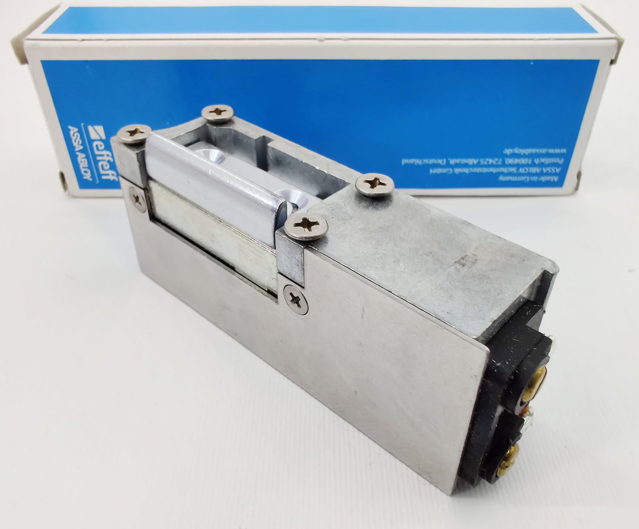 Електромеханічна клямка EFF EFF 115 ———D14 EFF EFF 115 ———D14 – електромеханічна клямка,призначена для установки разом з многонаправленными замками MUL-T-LOCK і MUL-T-LOCK-ESETY зі зменшеним відстанню між основним і ригелем язичком замку. Мають спеціальну несиметричну конструкцію. ТЕХНІЧНІ ХАРАКТЕРИСТИКИ Сторонность – ліва (4). Нормально закрита – закрита без харчування, відмикання подачею напруги. Регулювання язичка – FaFix (регулювання язичка засувки щодо корпусу, діапазон регулювання 5 мм). Напруга 6-12 В постійного струму (управління короткочасної подачею напруги (максимум 5 сек.), не призначена для тривалої електричної розблокування). Без зворотної планки – зворотна планка замовляється окремо відповідно до типу дверей. Сумісна з зворотними планками: , . Компанія Eff Eff, заснована в 1936 році як майстерня точної механіки і електротехніки, є провідним світовим брендом в області електромеханічних систем блокування та розблокування. Асортиментний ряд із понад 5000 найменувань включає електромеханічні защіпки, електромеханічні ригелі, замки підвищеної безпеки, системи контролю доступу та обладнання для аварійних виходів. Продукція бренду Eff Eff на сьогоднішній день забезпечує безпеку і комфорт в більш ніж 75 країнах світу.