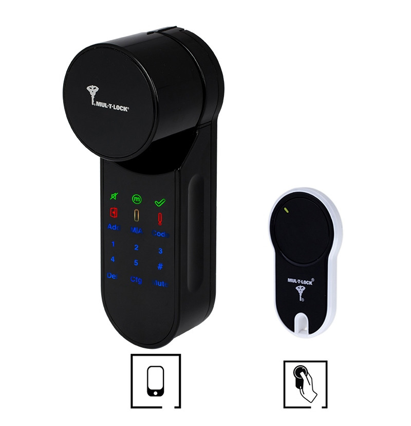 Електронний контролер MUL-T-LOCK ENTR чорний Циліндр MUL-T-LOCK ENTR в комплект не входить – циліндр замовляється окремо в залежності від товщини дверного полотна. Автономна бездротова система контролю доступу MUL-T-LOCK ENTR підходить для всіх типів дверей. Простий монтаж – не вимагає прокладки проводів або додаткової підготовки дверей. Просте і інтуїтивно зрозуміле управління. У поєднанні з циліндром MUL-T-LOCK ENTR дозволяє управляти дверима через мобільний додаток смартфона або за допомогою механічних ключів. Має два режими управління дверним замком – механічний або автоматичний. Придатний для застосування з силовими замками багатонаправленого замикання. Електронний контролер MUL-T-LOCK ENTR живиться від вбудованого акумулятора. Пульт дистанційного керування MUL-T-LOCK ENTR комутується з контролером MUL-T-LOCK ENTR за допомогою бездротового кодованого каналу передачі даних. Простий у використанні інструмент з однією кнопкою. Пультом можна відкривати і закривати двері як ззовні, так і зсередини. Просте додавання до системи і блокування в разі втрати. Радіус дії пульта близько 10 м. Замок здатний підтримувати до 20 пультів. Живлення пульта дистанційного керування MUL-T-LOCK ENTR від батарейки типу 2032. Компанія Mul-T-Lock (Мультілок) була заснована Авраамом Бахрі і Моше Пайову в 1973 році в Ізраїлі. Пройшовши шлях від невеликого підприємства до провідної компанії, сьогодні Mul-T-Lock є визнаним законодавцем на світовому ринку безпеки. З 2000 року Mul-T-Lock входить в групу компаній ASSA ABLOY.