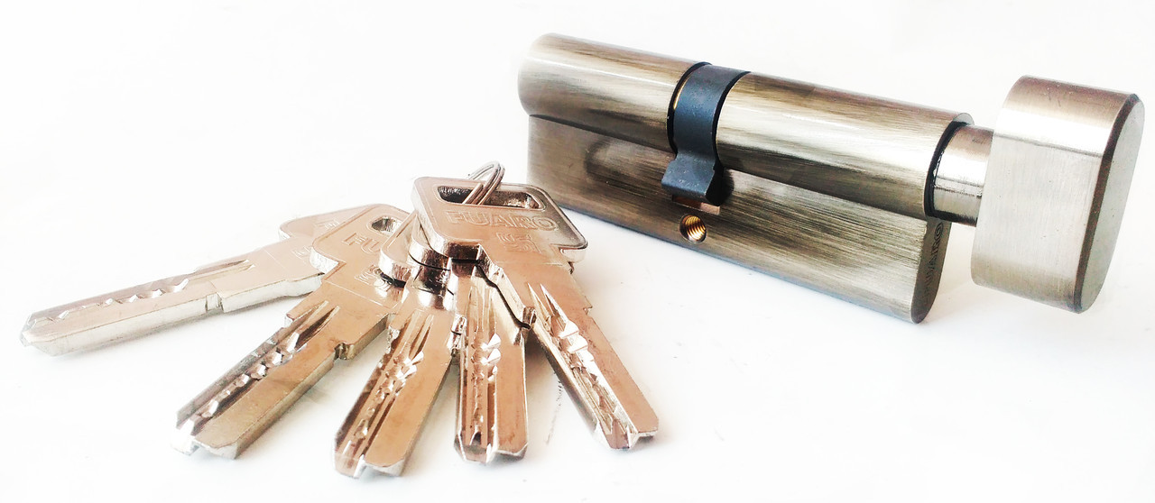 Циліндровий механізм Fuaro R602 100 мм 45х10х45 ключ/тумблер АВ бронза Циліндри та ключі – це зараз основа безпеки, це захист нашого будинку. Саме тому кожна двері повинна бути оснащена замком з надійним циліндровим механізмом. Для того щоб правильно вибрати необхідний для Вас циліндр, досить знати і враховувати кілька параметрів: безпека і надійність. Безпека – це опірність циліндра спроб розкриття і злому і захищеність ключа від виготовлення дублікатів і копій. Циліндри Fuaro можуть застосовуватися в приміщеннях, де достатній базовий рівень безпеки. Надійність – це показник, що визначає термін служби даного циліндра. За європейськими нормами цей показник вимірюється в кількості циклів відкривання і закривання. Кількість циклів роботи – 250 000, що гарантує безвідмовну роботу циліндра на багато років. ТЕХНІЧНІ ХАРАКТЕРИСТИКИ Матеріал циліндра – латунь. Тип ключа – перфорований. Маткриал ключа – латунь. Кількість ключів в комплекті – 5 шт. Кількість пінів – 6. Кількість комбінацій – більше 45 000. Клас безпеки – 2 клас. Працездатність – більше 250 000 циклів. Сталевий стрижень проти висвердлювання -1. Довжина гвинта – 70 мм. Гарантія – 5 років Fuaro – китайський виробник замкової продукції та фурнітури. Компанія Fuaro позиціонується, як виробник бюджетної, якісної і сучасної продукції. Продукцію компанії Fuaro також відрізняє широкий модельний ряд і різноманітність кольорів.