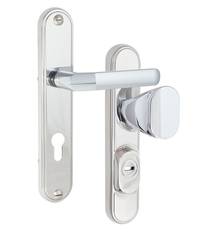 Фурнітура захисна ROSTEX DECOR R fix-mov 72 мм хром полірований 23 мм 40-45 мм 4 клас Ovalne/Baryt Технічні характеристики: • Специфікація фурнітури: R • Модель фурнітури: DECOR • Міжосьова відстань: 72 мм • Обробка фурнітури: хром полірований • Клас зламостійкості: 4 клас • Модель ручки: Ovalne/Baryt Фурнітура захисна ROSTEX R1 DECOR до основних замків для вхідних металевих і дерев’яних дверей товщиною 40-45 мм з можливістю продовження до 100 мм (комплекти подовження замовляються окремо). 4-й клас безпеки. Матеріал: нержавіюча сталь. Плата, що захищає корпус замка. Загартований протектор циліндра із захистом від висвердлювання. Кріплення – болти М8. Додатковий болт кріплення М6. Обробка – хром полірований. Одна з найпоширеніших і стійких обробок. Має поліровану дзеркальну поверхню сріблястого кольору. Добре виглядає як на темних, так і світлих дверях всіх кольорів. Підходить до всіх стилів інтер’єрів. ROSTEX – чеська компанія, яка була заснована в 1925 році в місті Вишків. Основна перевага фурнітури ROSTEX полягає в тому, що з допомогою стяжних гвинтів» і броненакладки на зовнішній частині, фурнітура захищає корпус і секретну частину замка від злому. Фурнітура виготовляється з високоякісного металу, який зберігає високі експлуатаційні характеристики протягом довгих років навіть при жорстких умовах експлуатації.