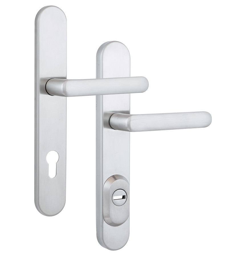 Фурнітура захисна ROSTEX EXСLUSIVE RX-40 mov-mov 90 мм нержавіюча сталь матова 22 мм 40-50 мм 3 клас Технічні характеристики: • Специфікація фурнітури: RX-40 • Модель фурнітури: EXСLUSIVE • Міжосьова відстань: 90 мм • Обробка фурнітури: нержавіюча сталь матова • Клас зламостійкості: 3 клас • Модель ручки: Exclusive Фурнітура захисна ROSTEX RX4/ПРО-40 EXСLUSIVE до основних замків для вхідних металевих і дерев’яних дверей товщиною 40-50 мм з можливістю продовження до 100 мм (комплекти подовження замовляються окремо). 3-й клас безпеки. Матеріал: нержавіюча сталь. Лита плата, що захищає корпус замка. Загартований протектор циліндра із захистом від висвердлювання. Кріплення – болти М8. Обробка – нержавіюча сталь матова. Має холодний сталевий відтінок з матовою поверхнею, оброблену щіткою. Найкраще підходить для застосування в сучасних інтер’єрах. ROSTEX – чеська компанія, яка була заснована в 1925 році в місті Вишків. Основна перевага фурнітури ROSTEX полягає в тому, що з допомогою стяжних гвинтів» і броненакладки на зовнішній частині, фурнітура захищає корпус і секретну частину замка від злому. Фурнітура виготовляється з високоякісного металу, який зберігає високі експлуатаційні характеристики протягом довгих років навіть при жорстких умовах експлуатації.