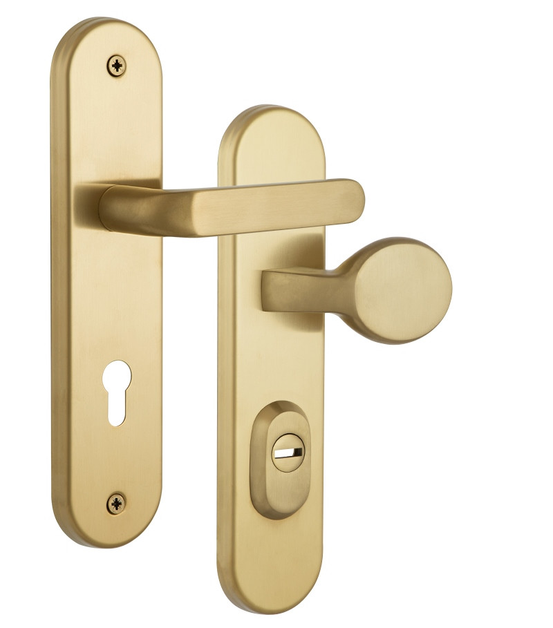 Фурнітура захисна ROSTEX SOLID-PRO F fix-mov 90 мм нержавіюча сталь матовий титан pvd 13 мм 38-52 мм 3 клас Slza Технічні характеристики: • Специфікація фурнітури: F • Модель фурнітури: *SOLID-PRO • Міжосьова відстань: 90 мм • Обробка фурнітури: нержавіюча сталь матовий титан pvd • Клас зламостійкості: 3 клас • Модель ручки: Slza/Solid Фурнітура захисна ROSTEX R1 SOLID-PRO до основних замків для вхідних металевих, дерев’яних та профільних дверей товщиною 38-52 мм з можливістю подовження до 100 мм (комплекти подовження замовляються окремо). 3-й клас безпеки. Матеріал: нержавіюча сталь. Плата товщиною 5 мм, що захищає корпус замка. Кріплення чотирма болтами М8 з двома додатковими точками кріплення гвинтами М6. Обробка – нержавіюча сталь матовий титан PVD, має жовтий колір і матову поверхню, оброблену щіткою. Краще виглядає на темних дверях, підходить до інтер’єру в класичному та сучасному стилях. ROSTEX – чеська компанія, яка була заснована в 1925 році в місті Вишків. Основна перевага фурнітури ROSTEX полягає в тому, що з допомогою стяжних гвинтів» і броненакладки на зовнішній частині, фурнітура захищає корпус і секретну частину замка від злому. Фурнітура виготовляється з високоякісного металу, який зберігає високі експлуатаційні характеристики протягом довгих років навіть при жорстких умовах експлуатації.