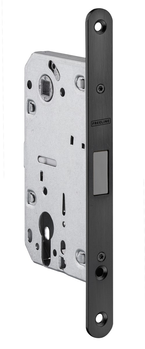 Міжкімнатна магнітна защіпка під циліндр JNF IN.20.835.BA PZ 85/50 чорний Дверний механізм JNF IN.20.835.BA із серії Magnetic DIN встановлюється під євроциліндр (PZ). Головна особливість конструкції — магнітна система зачинення, яка забезпечує плавну та безшумну роботу. Замок рекомендований виробником для дверей із середньою інтенсивністю експлуатації. Корпус виготовлений із нержавіючої сталі EN 1.4301 (AISI 304), стійкої до корозії та зношування. Симетрична обробка робить замок універсальним: він підходить для встановлення як у лівосторонні, так і в правосторонні двері. Магнітна відповідна планка регулюється за положенням, а зазор до магнітного язичка можна змінювати в межах ±1 мм. ТЕХНІЧНІ ХАРАКТЕРИСТИКИ: Тип: врізний магнітний замок під євроциліндр (PZ) Серія: Magnetic DIN Міжосьова відстань: 85 мм Backset: 50 мм Матеріал корпусу: нержавіюча сталь EN 1.4301 (AISI 304) Форма лицьової планки: симетрична, реверсивна Регулювання: зазор до магнітного язичка ±1 мм (при розвороті на 180°) Клас навантаження: середній (рекомендується для дверей із середньою інтенсивністю експлуатації) Особливості: безшумне зачинення, реверсивне встановлення Виробник: JNF (Португалія) JNF company – португальська компанія, заснована у 1965 році. Пройшовши шлях від невеликого підприємства до провідної компанії, сьогодні JNF є визнаним на світовому ринку виробником. Основним видом діяльності компанії є виробництво обладнання для меблевої та будівельної сфери. На сьогоднішній день продукція компанії продається більш ніж у 70 країнах світу.
