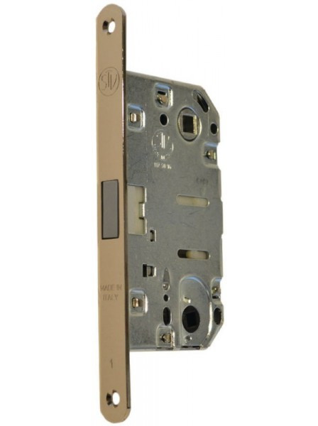 Магнітний Замок STV Attrazione WC • Видалення ключового отвору (Backset): 50 мм • Кріплення: через лицьову планку • Від: замок • Наявність засувки: є • Тип засувки: класична • Квадрат: 8 мм • Міжосьова відстань: 96 мм • Сторона відкривання: ліва/права Замок STV Attrazione WC врізний магнітний. Призначений для замикання / відкривання зсередини приміщення. Компанія STV, створена в 1960 році. STV виробляє: циліндри, замки, дверні ручки, замки та ручки для скляних дверей, ручки для розсувних дверей. Дизайн та естетична оздоблення видно в кожній деталі.