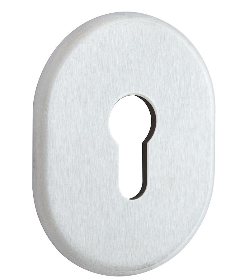 DISEC KT036 OVAL хром матовий Декоративний щиток внутрішній до захисного протектору стандарту DIN для замків DFM3, OFMPA3, CEM, CTM, для циліндрового механізму DIN. Виготовлений з латуні. Кріпиться на двері за допомогою пластику і саморізів. Обробка хром матовий. Має матову поверхню, оброблену щіткою, сріблясто-сірого кольору. Краще всього виглядає на дверях червонуватих відтінків – від світло-кремового до темно-коричневого шоколадного. Для інтер’єрів в сучасному і класичному стилях. DiSec — італійська компанія, заснована 2000 року. Займається виключно виробництвом захисної фурнітури. Така вузька спеціалізація дає змогу розробляти і постійно вдосконалювати нестандартні та оригінальні засоби захисту дверних замків. До нововведень цього виробника можна віднести використання елементів броненакладки із загартованої сталі, а також можливість приховати отвір для ключа під час Вашої відсутності. Завдяки зносостійкому багатошаровому гальванічному покриттю, продукція DiSec встановлюється на вхідні двері та стійка до атмосферних явищ. Об’єднання магнітних брелків у Майстер системи. Вся продукція виготовлена в Італії.