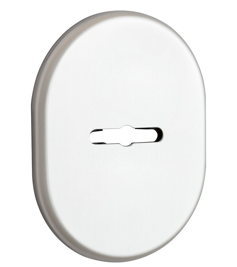 DISEC KT037 MATRIX OVAL без шторки нікель сатин Декоративний щиток зовнішній для сувальдних замків. Виготовлений з латуні. Кріпиться на двері за допомогою пластику і саморізів. Обробка нікель сатин, має шовковисто-матову поверхню і теплий сірий відтінок. Підходить для інтер’єрів в сучасному і класичному стилях. DiSec — італійська компанія, заснована 2000 року. Займається виключно виробництвом захисної фурнітури. Така вузька спеціалізація дає змогу розробляти і постійно вдосконалювати нестандартні та оригінальні засоби захисту дверних замків. До нововведень цього виробника можна віднести використання елементів броненакладки із загартованої сталі, а також можливість приховати отвір для ключа під час Вашої відсутності. Завдяки зносостійкому багатошаровому гальванічному покриттю, продукція DiSec встановлюється на вхідні двері та стійка до атмосферних явищ. Об’єднання магнітних брелків у Майстер системи. Вся продукція виготовлена в Італії.