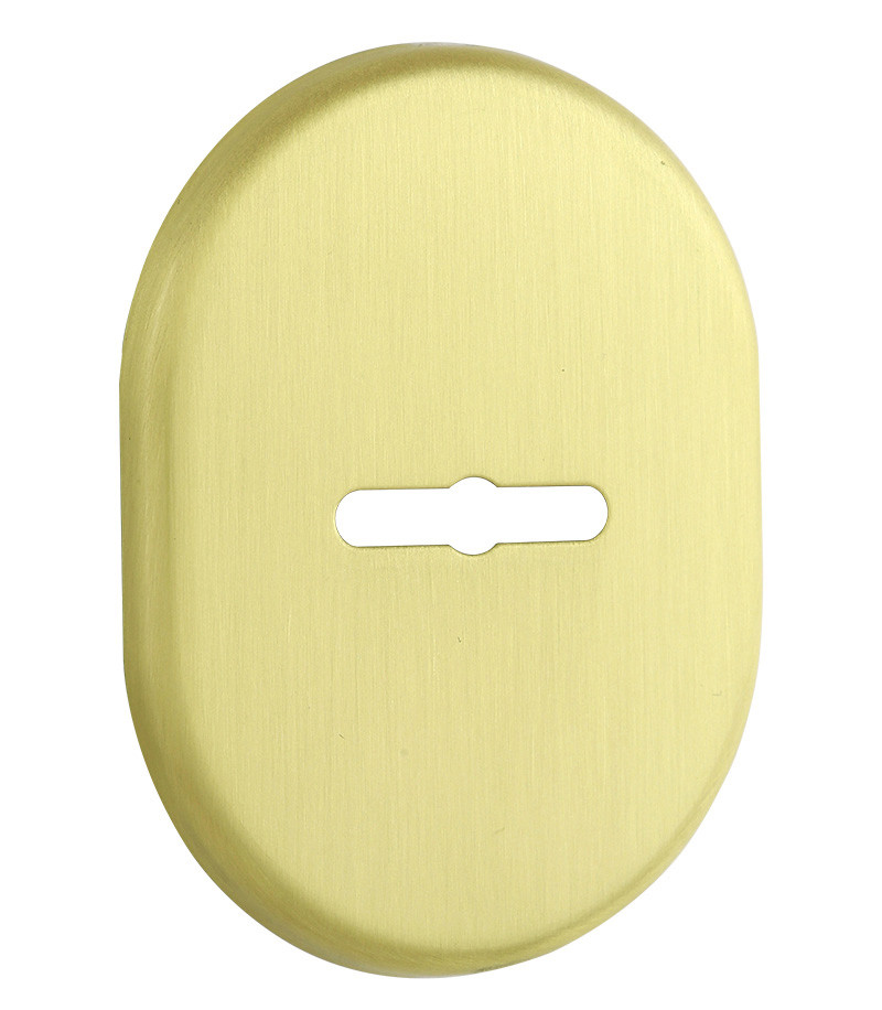 DISEC KT090 MATRIX OVAL з прихованою шторкою латунь матова Декоративний щиток внутрішній до замків сувальдного механізму. Виготовлений з латуні. Кріпиться на двері за допомогою пластику і саморізів. Обробка – латунь матова, має золотисто-жовтий колір натуральної латуні і матову поверхню, оброблена щіткою. Краще виглядає на темних дверях, підходить до інтер’єрів у класичному стилі. DiSec — італійська компанія, заснована 2000 року. Займається виключно виробництвом захисної фурнітури. Така вузька спеціалізація дає змогу розробляти і постійно вдосконалювати нестандартні та оригінальні засоби захисту дверних замків. До нововведень цього виробника можна віднести використання елементів броненакладки із загартованої сталі, а також можливість приховати отвір для ключа під час Вашої відсутності. Завдяки зносостійкому багатошаровому гальванічному покриттю, продукція DiSec встановлюється на вхідні двері та стійка до атмосферних явищ. Об’єднання магнітних брелків у Майстер системи.