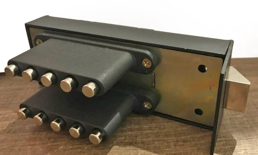Кодовий накладний замок Шерлок ЗКП2-40 Шерлок ЗКП2-40 – кодовий замок-засувка для встановлення на металеві та дерев’яні двері (ліві та праву) завтовшки до 45 мм. Завдяки кодовокнопковій системі, клямка не вимагає застосування ключа. Покриття на кнопках не псується навіть від несприятливих погодних умов, даючи змогу використовувати замок на вуличних воротах або калітках. Механізм відкривається за одночасного натискання декількох кнопок (від 1 до 9). Кодову комбінацію можна неодноразово змінювати. Для відкриття замка зовні необхідно один раз ввести код. Для відмикання зсередини необхідно відвести важіль убік від запірної планки. Для забезпечення підвищеного рівня секретності рекомендується кодувати замок не менш ніж на три цифри. ТЕХНІЧНІ ХАРАКТЕРИСТИКИ: Тип механізму — кодонабірний (перекодований). Кількість можливих кодів — понад 1000. Кількість перекодованих кнопок — 10. Рухомі деталі замка — сталь, покриття — нікель. Вага — 1,4 кг. Виробник дверної фурнітури Шерлок – команда професіоналів у замковому бізнесі, працює на ринку замкової продукції з 1994 року. Вся продукція сертифікована, із заводською гарантією. Компанія докладає великих зусиль для виробництва якісних продуктів, які тестує у своїй власній лабораторії та покращує якість та рівень захисту. Основний принцип роботи компанії – це якісний продукт за найкращою ціною. Зробивши вибір на користь дверних циліндрів Шерлок, клієнт гарантовано отримує якісний товар з довгим терміном експлуатації.