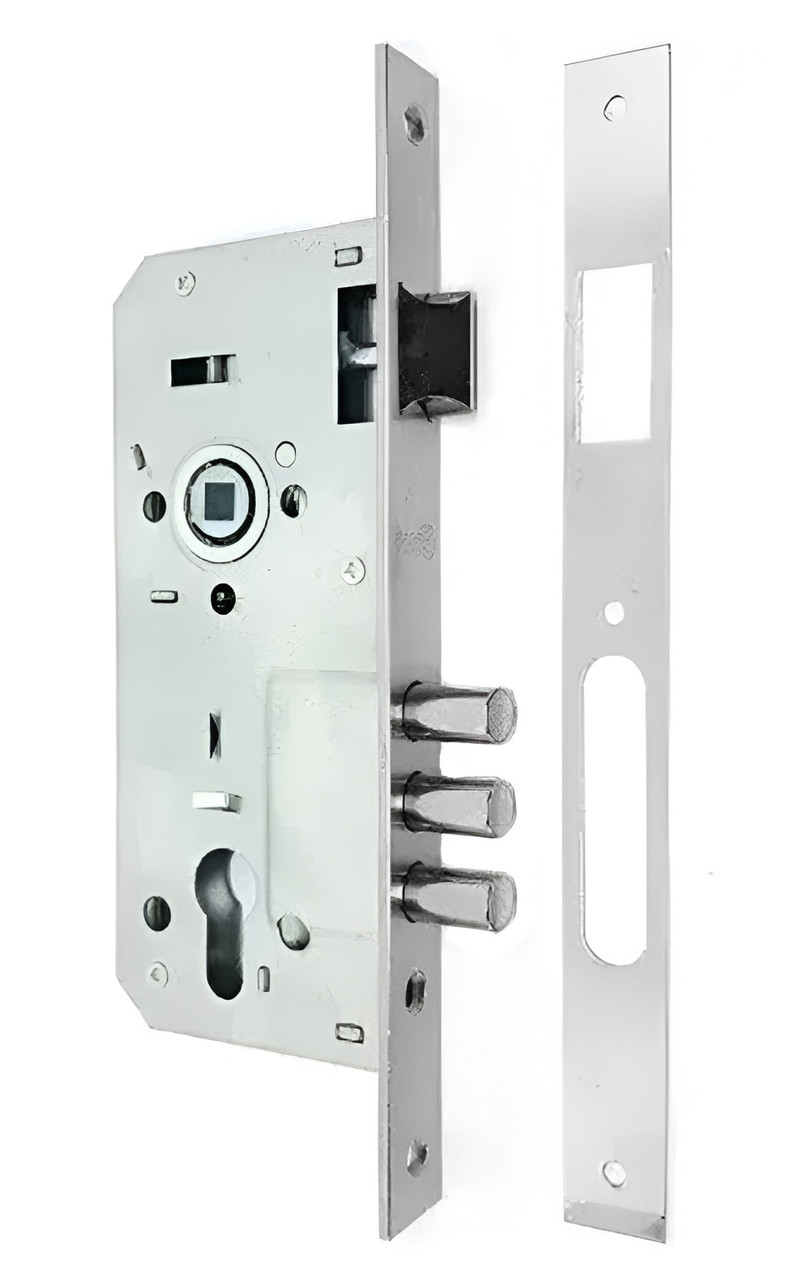 Врізний основний замок CLASS 2800 CP, BS45мм 85 мм хром Врізний замок CLASS 2800 (BS 45*85 мм) підходить для встановлення на зовнішні двері — найчастіше на дерев’яні вхідні двері квартир або офісів. Оснащений реверсивним язичком, що дозволяє встановлювати замок як на праві, так і на ліві двері. Під час зачинення замка три сталевих ригелі Ø12 мм висуваються на 20 мм, забезпечуючи надійний захист. Рекомендується встановлення у металеві двері товщиною до 50 мм. Для роботи замка потрібен циліндровий механізм (серцевина). Торцева планка виконана в оздобленні CP (хром). Корпус сумісний із замками серії KALE 2000. ТЕХНІЧНІ ХАРАКТЕРИСТИКИ Тип товару: врізний замок Модель: CLASS 2800 Backset: 45 мм Міжосьова відстань: 85 мм Призначення: вхідні двері Матеріал дверей: дерев’яні / металеві (до 50 мм) Керування: ручкою та серцевиною Язичок: реверсивний, сталевий Ригелі: 3 шт., Ø12 мм, виліт 20 мм Торцева планка: CP (хром) Сумісність: KALE 2000 Виробник: CLASS (Китай) КОМПЛЕКТАЦІЯ: Механізм замка Відповідна планка CLASS — це надійний китайський виробник замків та фурнітури для побутового і господарського використання. В асортименті бренду — навісні, врізні та накладні замки, механізми різної форми та ступеня захисту. Продукція CLASS виготовляється з міцних матеріалів (чавун, сталь, латунь) та орієнтована на практичне застосування: склади, ворота, комори, шафи й приміщення загального користування. Замки відрізняються простою конструкцією, стабільною якістю та доступною ціною. Бренд представлений на ринку понад 10 років і активно використовується в країнах Східної Європи та Азії.