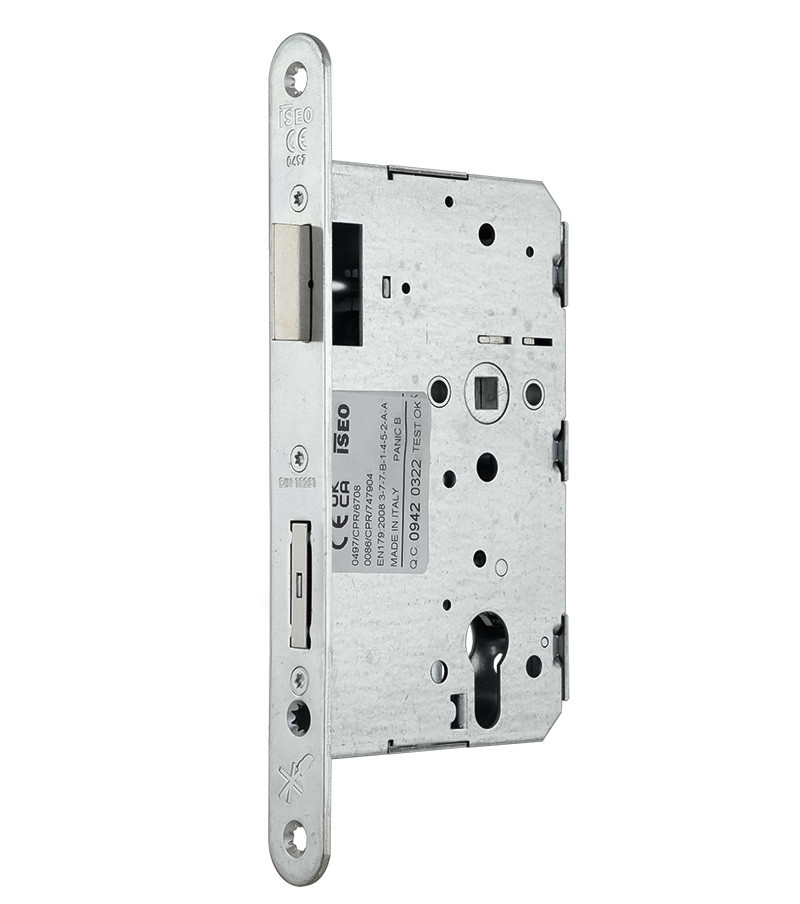 Замок для активной створки антипаника ISEO 2DB1116514.4 1 правый ISEO 2DB1116514.4 1 – замок врезной с открыванием наружу, PANIC FUNCTION B предназначен для установки в двустворчатую дверь эвакуационных выходов вместе с устройствами антипаники врезного типа, например TESA 1970 и QUICK1E или подобных моделей других производителей. ТЕХНИЧЕСКИЕ ХАРАКТЕРИСТИКИ Тип антипаники – В. Бексет – 65 мм. Межосевое расстояние – 72 мм. Шток – 9 мм. Язычок из закаленной стали для левой двери. КОМПЛЕКТАЦИЯ Замок. Винт для крепления цилиндра. Замок сертифицирован в Европе по EN 1125 (действующей в Украине по ДСТУ EN 1125:2014 Строительная фурнитура. Устройства выхода паники для использования на путях эвакуации, приводимых в действие горизонтальной штангой. Требования и методы испытаний (EN 1125:2008, IDT) и EN 12209 (действующей в Украине) ДСТУ EN 12209:2014 Строительная фурнитура – Замки и задвижки – Механические замки, задвижки и замковые пластины. Требования и испытания (EN 12209:2003, EN 12209:2003/АС:2005, IDT). Компания ISEO была основана в 1969 году и сегодня зарекомендовала себя в качестве мирового лидера среди производителей строительной индустрии, оборудовании и безопасности. Продукты Iseo отличаются высоким качеством, надежностью и высоким классом безопасности. ISE-2DB12165144