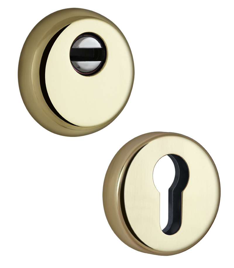 DISEC BD54 DIN ROUND 13 мм латунь PVD • Специфікація фурнітури: BD54 • Модель фурнітури: Без значення • Тип замку: DIN • Обробка фурнітури: латунь PVD • Клас зламостійкості: 3 клас • Товщина дверей: 13 мм Захисний загартований протектор до циліндрів стандарту DIN. Застосовують з основними і додатковими замками. 3-й клас безпеки. Матеріал – загартована сталь. Кріплення – болти М6. Циліндр входить в броненакладку на 4-9 мм Обробка – латунь PVD, має яскраво-жовтий колір і поліровану поверхню. Обробка стійка до подряпин і впливу зовнішнього середовища. Краще виглядає на темних дверях, підходить до інтер’єрів у класичному стилі. DiSec – італійська компанія, заснована 2000 року. Займається виключно виробництвом захисної фурнітури. Така вузька спеціалізація дає змогу розробляти і постійно вдосконалювати нестандартні та оригінальні засоби захисту дверних замків. До нововведень цього виробника можна віднести використання елементів броненакладки із загартованої сталі, а також можливість приховати отвір для ключа під час Вашої відсутності. Завдяки зносостійкому багатошаровому гальванічному покриттю, продукція DiSec встановлюється на вхідні двері та стійка до атмосферних явищ. Об’єднання магнітних брелків у Майстер системи. Вся продукція виготовлена в Італії.