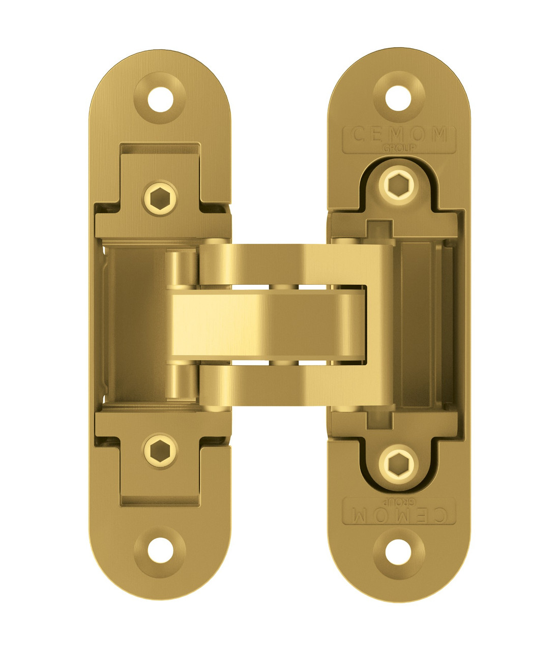 Універсальна прихована дверна петля Cemom Estetic-80A латунь CEMOM ESTETIC 80/A – це універсальна прихована петля для дверей, що забезпечує високу надійність і естетичний вигляд. Вона підходить для ліво- та правосторонніх дверей, а також підтримує тривимірне регулювання (по вертикалі, горизонталі та глибині), що дозволяє легко коригувати положення дверного полотна після встановлення. Ця модель підходить для дверей різної конструкції й може використовуватися як у житлових, так і в комерційних приміщеннях. ТЕХНІЧНІ ХАРАКТЕРИСТИКИ: Тип: прихована універсальна петля Матеріал: Zamak Максимальне навантаження – 80 кг (на 2 петлі) при ширині полотна до 900 мм і висоті щонайменше 2000 мм. Тривимірне регулювання: Вертикальне – ±2 мм. Горизонтальне – ±2 мм. Глибинне – ±1 мм. Відстань між рамною та стулковою частинами – 19 мм. Сертифікована на 200 000 циклів відкривання-зачинення (EN1935-374 010 011), а заводські тести показали до 400 000 циклів. Для дверей завтовшки від 40 до 60 мм. Кількість петель залежно від ваги дверей: 2 петлі – до 80 кг 3 петлі – до 100 кг 4 петлі – до 110 кг CEMOM MOATTI – європейський бренд преміальної дверної фурнітури, що спеціалізується на інноваційних рішеннях прихованого монтажу. Продукція поєднує надійність, довговічність і передові технології, забезпечуючи ідеальну функціональність та естетику. Усі вироби проходять суворі випробування на зносостійкість, витримуючи сотні тисяч циклів відкривання, і сертифіковані за європейськими стандартами (EN1935 та ін.), що гарантує їхню безпечність і якість.