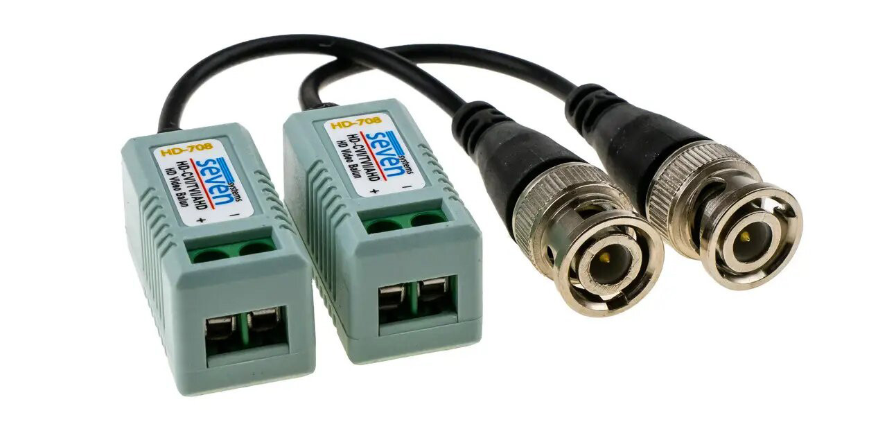 Приймач-передавач на звитій парі (balun) SEVEN HD-708 SEVEN HD-708 – пристрій, що дає змогу передавати аналоговий відеосигнал по крученій парі. Використовується в парі на передавальному та приймальні кінцях відео лінії. Ця модель дає змогу без втрати якості передати відеосигнал 720P/1080P на відстань до 250 метрів, що дає змогу істотно заощаджувати на кабелі, водночас не жертвуючи якістю картинки. ТЕХНІЧНІ ХАРАКТЕРИСТИКИ: Тип приймача: пасивний. Стандарт відеосигналу: CVI, TVI, AHD і Analog. Дальність передавання сигналу: 720p – 250 м, 1080р – 200 м. Формат відеосигналу: NTSC, PAL і SECAM. Пропускна здатність: 0-50 Mhz. Діапазон робочих температур: -20…70С°. За відносної вологості: 0…95%. Матеріал корпусу: ABS пластик. Розмір: 31х15х15. ПІД ВИНТ. Компанія SEVEN Systems упродовж 5 років займає лідерські позиції на ринку обладнання за системами контролю доступу, а зокрема за автономними рішеннями. Щорічно є учасниками в профільових виставках, як-от Expert Security та IntrererBuildExpo.