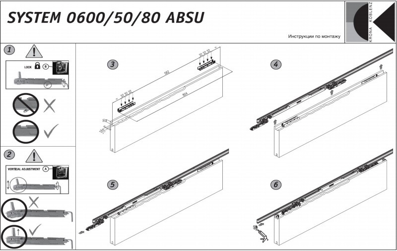 Розсувна система Koblenz 0600/80 ABSU на 1-дверцята 80 кг вбудований 2-й дотягувач