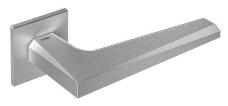 Дверна ручка на тонкій розетці Tupai 4151Q 5S матовий хром Tupai 4151Q 5S — дверна ручка на квадратній розетці, виготовлена зі сплаву Zamak. Підходить як для вхідних, так и для міжкімнатних дверей. Тонка розетка завтовшки всього 5 мм надає ручці легкості та мінімалістичної естетики. Основні переваги дверних ручок TUPAI: висока якість використовуваних матеріалів відповідність міжнародним вимогам, гарантійний термін на 24 місяці, високі експлуатаційні показники, запатентований механізм накладки, який робить основу ручки практично невидимим на дверному полотні. Фіксатор WC, накладки під циліндр і під ключ замовляються окремо, ознайомитися та придбати їх можна за посиланнями нижче! Tupai — португальський виробник високоякісної фурнітури й аксесуарів для дверей, який має найсучаснішу виробничу лінію в Європі й здобув визнання тисячі клієнтів. Завод Tupai виробляє дверну фурнітуру понад 40 років (був заснований 1976 року). Продукція Tupai має безліч нагород і сертифікатів (зокрема ISO 9001), а сама фабрика є виробником світового рівня, відомим своїми інноваційними розробками та займає чималу частину європейського ринку дверної фурнітури. Компанія постійно інвестує в нові технології виробництва та тестування продукції, внаслідок чого Tupai є одним із лідерів ринку, орієнтуючись водночас на високу якість та ексклюзивний дизайн виробів.