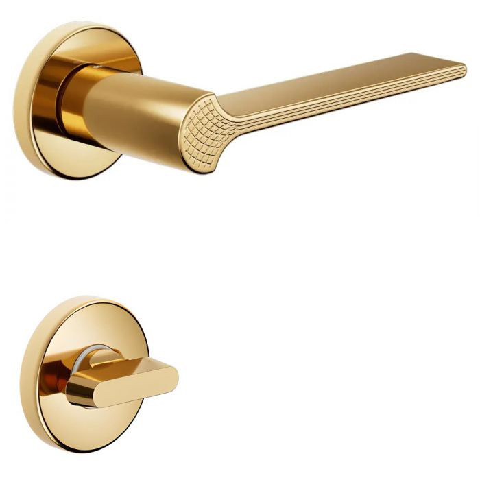 Ручка для дверей с WC фиксатором DND by Martinelli GINKO BILOBA RDN25+A античне золото DND by Martinelli GINKO BILOBA — ергономічна ручка в оригінальному дизайні на круглій розетці для вхідних і міжкімнатних дверей. Виготовлена з високоміцної латуни з багатошаровим гальванічним покриттям для стійкості кольору та захисту від пошкоджень. Доповнена накладкою для WCМеталевий пружинний механізм гарантує довговічну роботу фурнітури. ТЕХНІЧНІ ХАРАКТЕРИСТИКИ Матеріал — латунь. Покриття — гальваніка. Форма розетки — кругла. Тип замикання — WC. Металевий пружинний механізм. Розмір ручки — 135*54 мм. Розмір розетки — 50 * 7 мм. ДОДАТКОВІ РЕКОМЕНДАЦІЇ Не чистити вироби абразивними засобами, у разі потреби протирати сухою м’якою серветкою. До монтажу зберігати в оригінальному пакованні виробника. Компанія Martinelli була заснована ще 1968 року в місті Нозза (Італія) Анжело Мартінеллі та його братами, які змогли об’єднати сучасні технології, високу якість і накопичену поколіннями майстерність в обробленні латуні. У 1998 році було засновано підрозділ DND, створений для розроблення дизайнерської інноваційної продукції. А 2014 року обидва бренди сформували єдину торгову марку DND by Martinelli, широко відому сьогодні в багатьох країнах Європи, зокрема й в Україні.