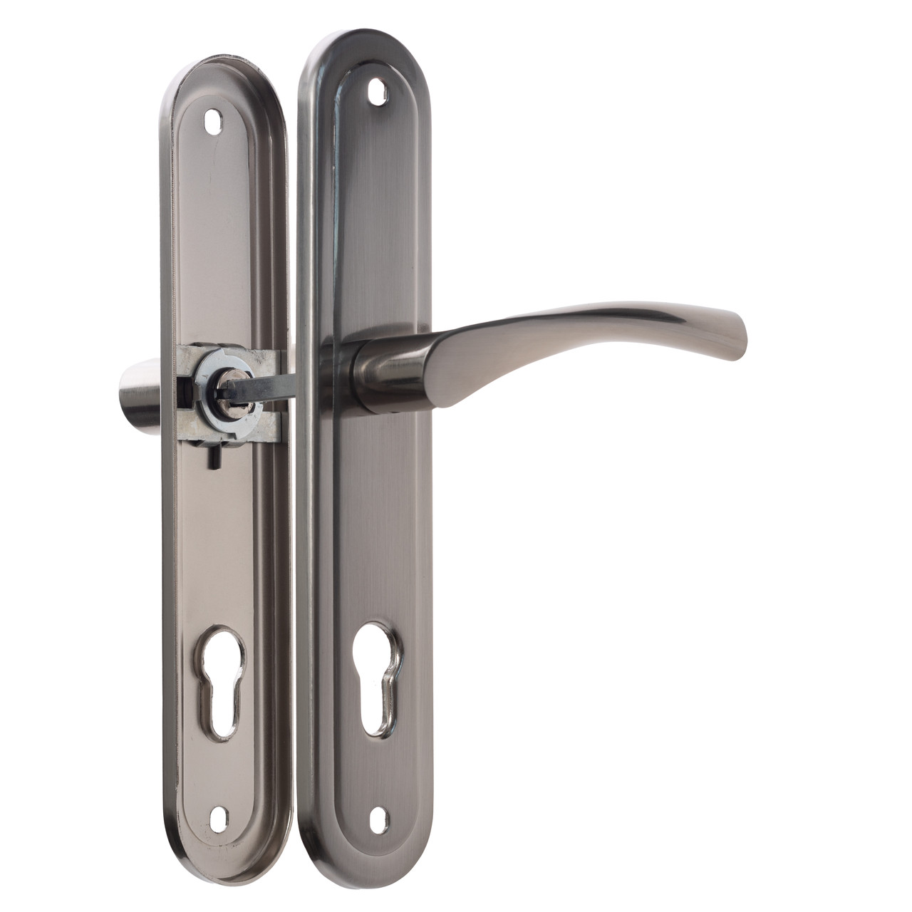 Дверний гарнітур ASTEX AT — Cornu 85/50 NEWBN нікель Дверна ручка на планці ASTEX AT – Cornu 85/50 — універсальне рішення для вхідних і міжкімнатних дверей у кольорі “нікель”. Модель виконана в класичному стилі з овальною формою планки. Підходить для дверей з правим і лівим відкриванням, ідеально монтується як на металеву, так і на дерев’яну основу. Планка виготовлена з сталі, а ручки — з міцного алюмінієвого сплава. Для захисту від корозії та зносу поверхня покрита багатошаровим гальванічним нанопокриттям. Встановлюється з врізними замками з міжосьовою відстанню 85 мм (купується окремо). ТЕХНІЧНІ ХАРАКТЕРИСТИКИ: Тип виробу: дверна ручка на планці Призначення: вхідні та міжкімнатні двері Міжосьова відстань: 85 мм Матеріал ручок: металевий сплав Матеріал планки: сталь Колір: нікель (BN) Покриття: гальванічне багатошарове нанопокриття Форма планки: овальна Сторона відкривання: ліва/права Вага комплекту: 0,4 кг Довжина ручки: 108 мм Розмір планки: 266 × 50 мм КОМПЛЕКТАЦІЯ: 2 ручки на планці Саморізи для монтажу ASTEX — найбільший український виробник комплектуючих для світлопрозорих конструкцій. З 2005 року компанія успішно працює на ринку віконно-дверної фурнітури, використовуючи тільки сертифіковану сировину. Завдяки стратегії активного розвитку ASTEX зарекомендував себе як надійний партнер на українському та міжнародному ринках, з понад 15-річним досвідом і командою професіоналів.
