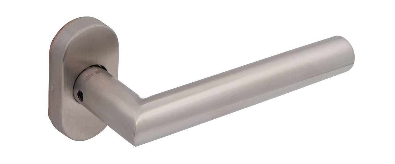 Ручки для дверей CISA PL Angle 07070.82 нержавіюча сталь CISA PL Angle 07070.82 — комплект дверних ручок із високоякісної нержавіючої сталі. Підходять для використання як усередині, так і зовні приміщень, а також на вогнестійких дверях. Монтаж на дверні полотна от 38 до 54 мм. Ручки на овальній розетці з матовим оздобленням оптимальні для встановлення в місцях із високим трафіком. ТЕХНІЧНІ ХАРАКТЕРИСТИКИ: Матеріал виготовлення — нержавіюча сталь. Для дверей завтовшки від 38 до 54 мм. Форма розетки — овальна. Товщина розетки — 10 мм. Ширина розетки — 39 мм. Довжина натискної частини — 135 мм. Діаметр натискної частини — 19 мм. Якісна поворотна пружина. Кріплення до дверей — стяжними гвинтами. Фіксація до стрижня (квадрату) — гужоном. 3 клас категорії використання — для місць із підвищеною частотою використання. 7 клас міцності за стандартом EN 1906 — 200000 циклів відчинення. Стійкість до корозії 2 класу — 96 годин (сертифіковані за стандартом EN 1670). Вогнестійкість — 2 години на дерев’яних і 4 години на металевих дверях (сертифіковані за EN 1634). ДОДАТКОВІ РЕКОМЕНДАЦІЇ Не чистити вироби абразивними засобами, у разі потреби протирати сухою м’якою серветкою. До монтажу зберігати в оригінальному пакуванні виробника. Фіксатор WC і накладки під циліндр замовляються окремо, ознайомитися та придбати їх можна за посиланнями нижче! Назва бренда CISA — це початкові літери імені «батьківської» компанії Costruzioni Italiane Serrature e Affini, що означає «Виробництво італійських замків і супутніх товарів». Підприємство було організоване в 1926-му році жителями Флоренції Луїджі Боччі та Піною Дель’Аньєло для виготовлення високотехнологічних виробів — електромеханічних замків. На сьогодні CISA — провідний бренд у складі міжнародної компанії Allegion, яка об’єднала приблизно 25 найвідоміших торгових марок індустрії безпеки. Знамениті електричні замки CISA і системи СКУД (контролю й керування доступом) мають популярність у понад 70 країнах. Сьогодні асортимент продукції CISA налічує вже понад 30.000 найменувань.