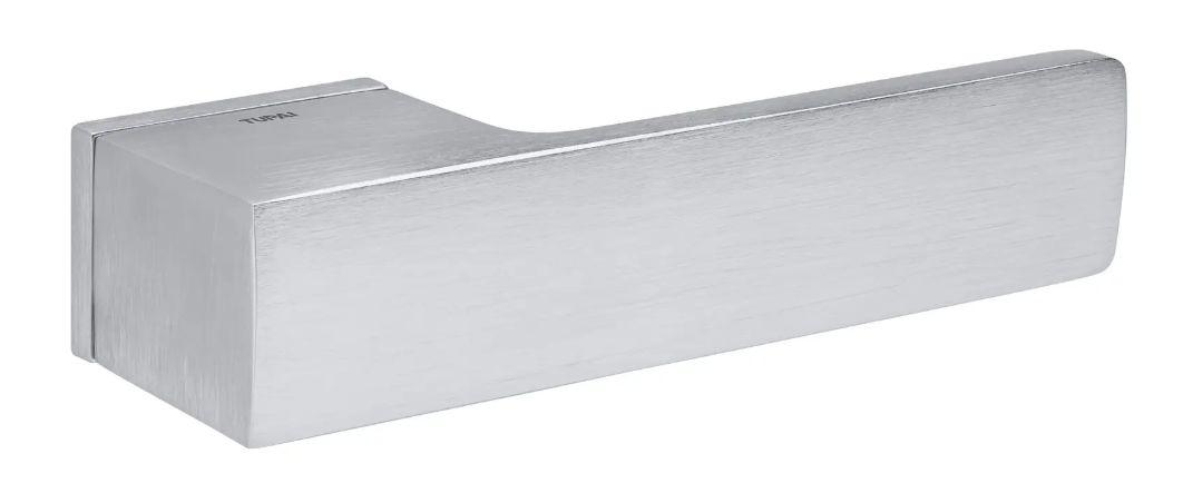 Ручка для дверей Tupai Big Gordo 4084 5RE хром матовий Tupai Big Gordo 4084 5RE дверна ручка на прямокутній розетці, виготовлена з високоякісного сплаву Zamak, який вирізняється довговічністю, стійкістю до корозії та механічних пошкоджень. Під товщину дверей 30-60 мм. Продумана форма гарантує комфортне захоплення і легкість експлуатації. Основні переваги дверних ручок TUPAI: висока якість використовуваних матеріалів відповідність міжнародним вимогам, гарантійний термін на 24 місяці, високі експлуатаційні показники, запатентований механізм накладки, який робить основу ручки практично невидимим на дверному полотні. Фіксатор WC, накладки під циліндр і під ключ замовляються окремо, ознайомитися та придбати їх можна за посиланнями нижче! Tupai — португальський виробник високоякісної фурнітури й аксесуарів для дверей, який має найсучаснішу виробничу лінію в Європі й здобув визнання тисячі клієнтів. Завод Tupai виробляє дверну фурнітуру понад 40 років (був заснований 1976 року). Продукція Tupai має безліч нагород і сертифікатів (зокрема ISO 9001), а сама фабрика є виробником світового рівня, відомим своїми інноваційними розробками та займає чималу частину європейського ринку дверної фурнітури. Компанія постійно інвестує в нові технології виробництва та тестування продукції, внаслідок чого Tupai є одним із лідерів ринку, орієнтуючись водночас на високу якість та ексклюзивний дизайн виробів.