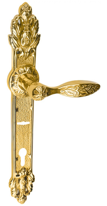 Ручка на планці UNO BAROCCO BELLE 840 Two Key Lock під 2 ключі золото 24K (Україна)
