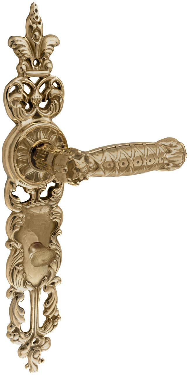 Дверна ручка на планці UNO BAROCCO GRANDE 750 WC матова латунь UNO BAROCCO GRANDE 750 WC – дверна ручка в класичному дизайні для вхідних і міжкімнатних дверей. Виготовлена з високоякісної латуні. Доповнена фіксатором WC. Спеціальне гальванічне покриття захищає від стирання й пошкоджень, зберігаючи первісний вигляд фурнітури тривалий час. Замовити ручки можна в будь-якому іншому кольорі — термін виконання 14-30 днів. Також є послуга ексклюзивного покриття з дорогоцінних металів, золота, срібла та вставки коштовного каміння на ваш вибір. Стильна ручка GRANDE 750 стане справжньою окрасою інтер’єру. ТЕХНІЧНІ ХАРАКТЕРИСТИКИ: Матеріал — латунь. Принцип кріплення — накладний. Покриття — гальваніка. Довжина ручки — 146 мм. Ширина розетки/планки — 60 мм. Висота розетки/планки — 350 мм. Міжосьова відстань — 96 мм. УВАГА! Колір ручки на фотографії сайту може відрізнятись від реального кольору, що пов’язано з викривленням кольору монітора, налаштуванням фотоапаратури, гаджетів та іншими факторами. ДОДАТКОВІ РЕКОМЕНДАЦІЇ: Не чистити вироби абразивними засобами, у разі потреби протирати сухою м’якою серветкою. До монтажу зберігати в оригінальному пакованні виробника. UNO BAROCCO — престижний бренд класу люкс, що спеціалізується на розкішних виробах високого класу, який серйозно ставиться до своєї місії та створює унікальні шедеври майстрами-ремісниками з найкращих матеріалів. Вироби компанії зібрані з особливою увагою до всіх деталей, які може надати світова тенденція. UNO BAROCCO дає гарантію на покриття.