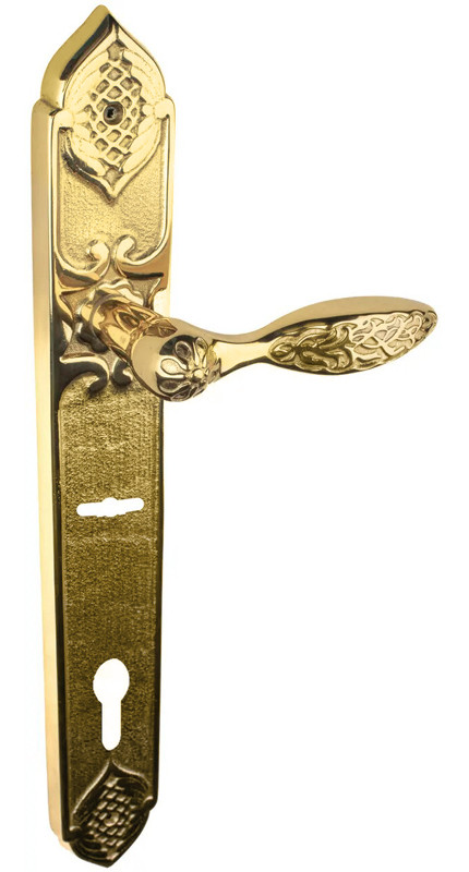 Ручка на планці UNO BAROCCO CRISTALLO 840 Two Key Lock під 2 ключі золото 24K UNO BAROCCO CRISTALLO 840 Two Key Lock – дверна ручка в класичному дизайні для монтажу на вхідні та міжкімнатні двері. Планка з отворами під два типи замків – сувальдний і циліндровий. Матеріал фурнітури – латунь. Спеціальне гальванічне покриття захищає від стирання та пошкоджень, зберігаючи первозданний вигляд ручок тривалий час. Замовити ручки можна в будь-якому іншому кольорі – термін виконання 14-30 днів. Також є послуга ексклюзивного покриття з дорогоцінних металів, золота, срібла, та вставки дорогоцінного каміння на ваш вибір. ТЕХНІЧНІ ХАРАКТЕРИСТИКИ Матеріал – латунь. Принцип кріплення – накладний. Тип замикання планки – PZ і SAFE KEY. Покриття – гальваніка. Довжина ручки – 142 мм. Ширина розетки/планки – 60 мм. Висота розетки/планки – 420 мм. Міжосьова відстань – 85 мм. УВАГА! Колір ручки на фотографії сайту може відрізнятися від реального кольору, що пов’язано з викривленням кольору монітора, налаштуваннями фотоапаратури, гаджетів та іншими факторами. ДОДАТКОВІ РЕКОМЕНДАЦІЇ Не чистити вироби абразивними засобами, у разі потреби протирати сухою м’якою серветкою. До монтажу зберігати в оригінальній упаковці виробника. UNO BAROCCO – престижний бренд класу люкс, що спеціалізується на розкішних виробах високого класу, який серйозно ставиться до своєї місії та створює унікальні шедеври майстрами-ремісниками з найкращих матеріалів. Вироби компанії зібрані з особливою увагою до всіх деталей, які може надати світова тенденція. UNO BAROCCO дає гарантію на покриття.