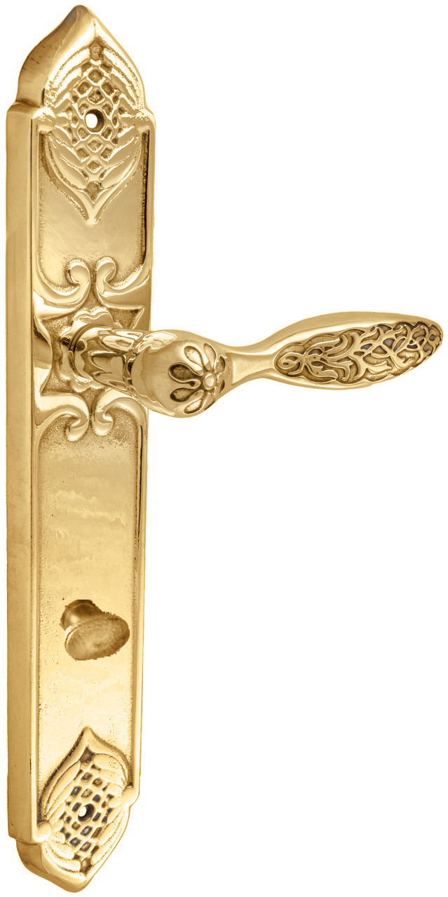 Дверна ручка з WC фіксатором UNO BAROCCO CRISTALLO 840 золото 24K UNO BAROCCO CRISTALLO 840 WC – стильна ручка на планці, доповнена WC фіксатором. Завдяки гальванічному покриттю ручки збережуть свій первісний вигляд надовго, і будуть захищені від зовнішніх несприятливих умов, зокрема від підвищеної вологості. Матеріал ручок — латунь. На замовлення можна виготовляти ручки будь-якого іншого кольору — термін виготовлення 14-30 днів. Також є послуга ексклюзивного покриття з дорогоцінних металів, золота, срібла та вставки коштовного каміння на ваш вибір. Ручка CRISTALLO 840 стане оригінальним акцентом інтер’єру та додасть йому ноту розкоші. ТЕХНІЧНІ ХАРАКТЕРИСТИКИ: Матеріал — латунь. Принцип кріплення — накладний. Покриття — гальваніка. Тип замикання планки — WC. Довжина ручки — 142 мм. Міжосьова відстань — 96 мм. Ширина розетки/планки — 60 мм. Висота розетки/планки — 350 мм. УВАГА! Колір ручки на світлині сайту може відрізнятися від реального кольору, що пов’язано з викривленням кольору монітора, параметрами фотоапаратури, ґаджетів та іншими чинниками. ДОДАТКОВІ РЕКОМЕНДАЦІЇ: Не чистити вироби абразивними засобами, у разі потреби протирати сухою м’якою серветкою. До монтажу зберігати в оригінальному пакованні виробника. UNO BAROCCO — престижний бренд класу люкс, що спеціалізується на розкішних виробах високого класу, який серйозно ставиться до своєї місії та створює унікальні шедеври майстрами-ремісниками з найкращих матеріалів. Вироби компанії зібрані з особливою увагою до всіх деталей, які може надати світова тенденція. UNO BAROCCO дає гарантію на покриття.