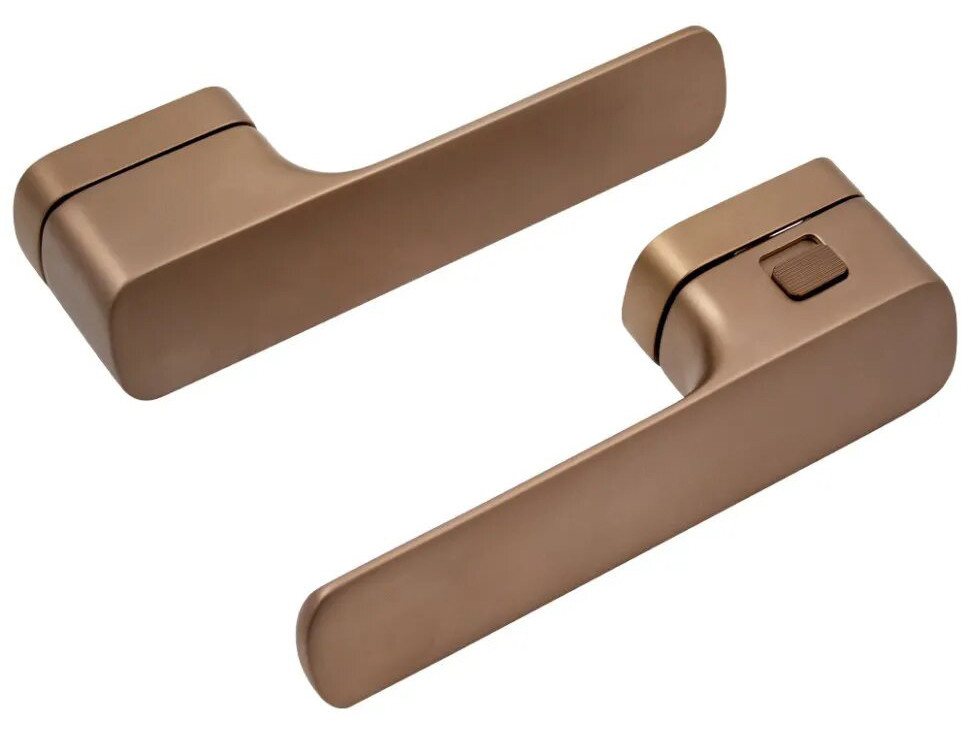 Дверна ручка з WC фіксатором M&T Minimal 2.0 ліва, титан/коричневий матовий M&T Minimal 2.0 — дверна ручка з латуні з вбудованим WC-фіксатором. Запатентований дверний механізм пружинного типу М 2011 забезпечує тривале користування без люфту та провисання. Сумісна з усіма врізними сучасними замками. Технологія Minimal 2.0 з інтегрованою системою замикання дає змогу зручно керувати дверима однією рукою. ТЕХНІЧНІ ХАРАКТЕРИСТИКИ Тип товару — дверна ручка. Принцип кріплення — накладний. Форма розетки — прямокутна. Механізм — натискний. Сторонність — ліва. Матеріал — латунь. Замикання — WC-фіксатор. Розміри — 130*152*33 мм. ДОДАТКОВІ РЕКОМЕНДАЦІЇ Не чистити вироби абразивними засобами, у разі потреби протирати сухою м’якою серветкою. До монтажу зберігати в оригінальному пакованні виробника. Компанія M&T заснована в Чехії 1997 року. Виготовляє ручки унікального дизайну, які добре підходять для дому та офісу. M&T є одним з лідерів виробництва дверної фурнітури на європейському ринку. Авторські розробки дуже добре виділяються із загальної маси виробників. Підприємство постійно покращує дизайн, доповнює модельний ряд продукції, але насамперед контролює якість товару. Під час виготовлення ручок M&T використовуються передові технології, що дають змогу підвищити надійність, водночас залишатися в розумному ціновому сегменті на ринку. П63740