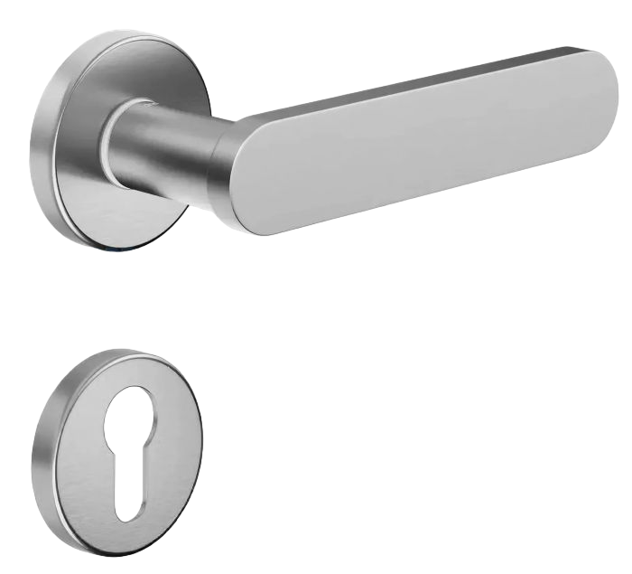 Ручка для дверей DND by Martinelli SHORT з накладкою під циліндр матовий хром DND by Martinelli SHORT — ручка в стильному дизайні на тонкій круглій розетці 4 мм для вхідних і міжкімнатних дверей. Виготовлена з високоміцної латуни із захисним гальванічним покриттям для стійкості кольору. Доповнена накладкою під циліндровий замок. Металевий пружинний механізм гарантує довговічну роботу ручок. ТЕХНІЧНІ ХАРАКТЕРИСТИКИ Матеріал — латунь. Покриття — гальваніка. Форма розетки — кругла. Тип замикання — PZ. Металевий пружинний механізм. Розмір ручки — 130*43 мм. Розмір розетки — 50 * 4 мм. ДОДАТКОВІ РЕКОМЕНДАЦІЇ Не чистити вироби абразивними засобами, у разі потреби протирати сухою м’якою серветкою. До монтажу зберігати в оригінальному пакованні виробника. Компанія Martinelli була заснована ще 1968 року в місті Нозза (Італія) Анжело Мартінеллі та його братами, які змогли об’єднати сучасні технології, високу якість і накопичену поколіннями майстерність в обробленні латуні. У 1998 році було засновано підрозділ DND, створений для розроблення дизайнерської інноваційної продукції. А 2014 року обидва бренди сформували єдину торгову марку DND by Martinelli, широко відому сьогодні в багатьох країнах Європи, зокрема й в Україні.