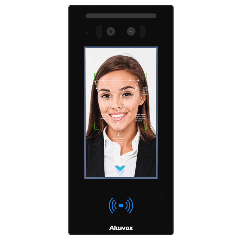 Інтелектуальний термінал контролю доступу Akuvox A05C з розпізнаванням обличчя, NFC, BLE і QR-кодами Akuvox A05C — це сучасний багатофункціональний термінал контролю доступу, що поєднує розпізнавання обличчя, NFC, Bluetooth і RFID-технології в одному пристрої. Він забезпечує швидку та точну ідентифікацію користувача менш ніж за 0.2 секунди, підтримуючи найвищий рівень безпеки для офісів, бізнес-центрів, житлових комплексів і підприємств. Пристрій оснащений 5-дюймовим IPS-екраном (1280×720) з яскравим сенсорним інтерфейсом і 2 Мп камерою з WDR, що гарантує чітке зображення навіть при слабкому або змінному освітленні. Інтелектуальна функція розпізнавання обличчя може працювати навіть при наявності захисної маски. Akuvox A05C підтримує ідентифікацію за допомогою обличчя, RFID-карт, NFC, BLE (Bluetooth) або QR-коду. При необхідності може бути підключений модуль вимірювання температури тіла (MD01 / MD02), що робить пристрій придатним для медичних і корпоративних середовищ. Корпус виконано з міцного пластику з ступенем захисту IP65, що забезпечує надійну роботу в широкому діапазоні температур — від -20°C до +55°C. Пристрій підтримує PoE (802.3af), а також живлення DC12V, має 1 релейний вихід і 1 вхід, RS485 та Wiegand для інтеграції з іншими системами. ТЕХНІЧНІ ХАРАКТЕРИСТИКИ: Тип системи: мережева Інтерфейс: провідний (TCP/IP, RS485, Wiegand) Протоколи зв’язку: TCP, IP, Wiegand, RS485 Підтримка стандартів: TCP/IP, Wiegand, RS485, PoE (IEEE 802.3af), RFID (13.56 МГц), NFC, BLE 5.0 Екран: 5″ IPS LCD, 1280×720 Камера: 2 Мп з WDR Тип ідентифікації: обличчя (Face ID), RFID, NFC, BLE, QR-код, Smart Plus Кількість шаблонів облич: до 10 000 База користувачів: 20 000 База подій: 50 000 Кількість реле: 1 Кількість входів: 1 Тип підтримуваних зчитувачів: електронні безконтактні Матеріал корпусу: пластик Підключення: PoE або DC12V Клас захисту: IP65 Температурний діапазон: -20°C ~ +55°C Розміри: 192 × 88 × 24 мм Вага: 0.75 кг КОМПЛЕКТАЦІЯ: Термінал контролю доступу Akuvox A05C Монтажний комплект Інструкція користувача Akuvox – провідний світовий розробник інтелектуальних систем домофонії та рішень для «розумного дому». Компанія розкриває потенціал сучасних технологій, щоб зробити життя людей безпечнішим, зручнішим і більш пов’язаним. Продукти та рішення Akuvox щодня використовуються у понад 100 країнах світу, задовольняючи потреби клієнтів у різних сферах – від житлової та комерційної нерухомості до охорони здоров’я та громадської безпеки.